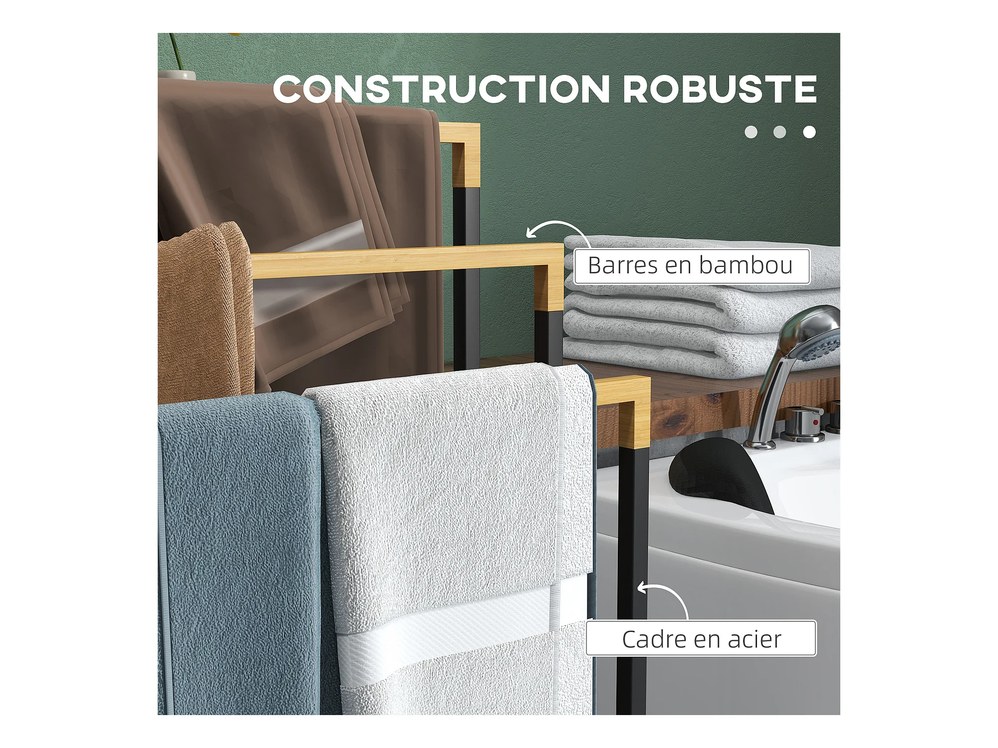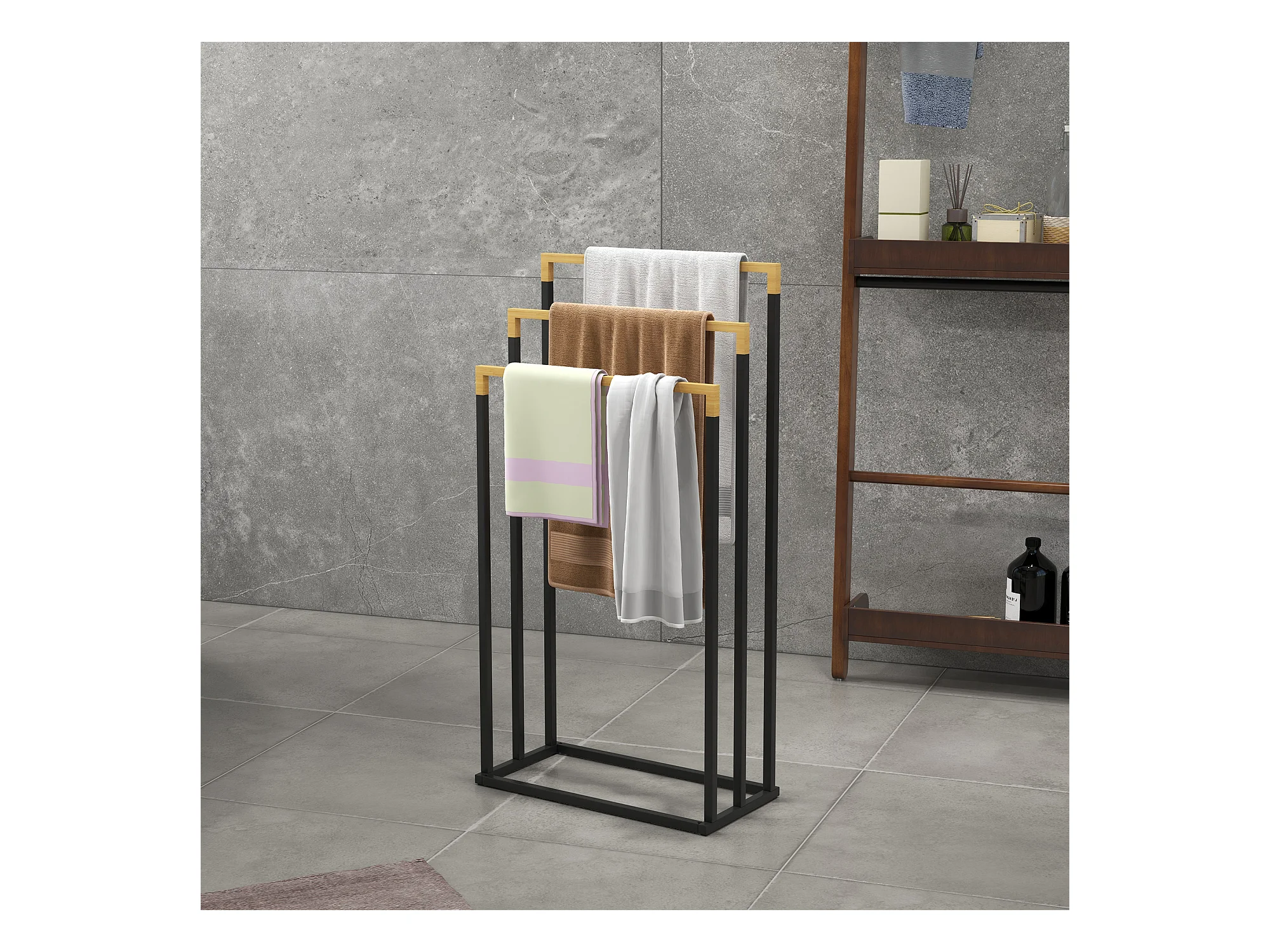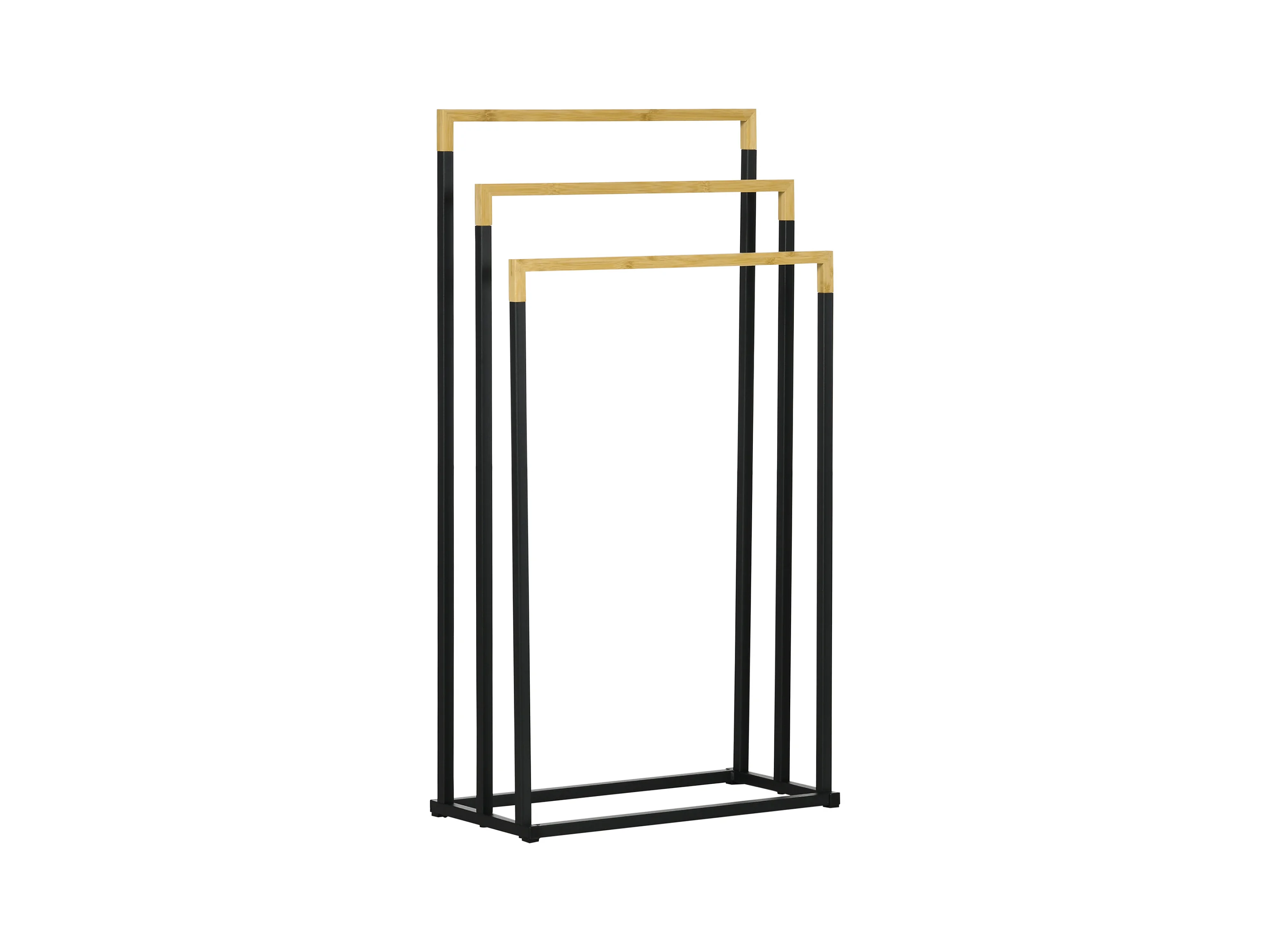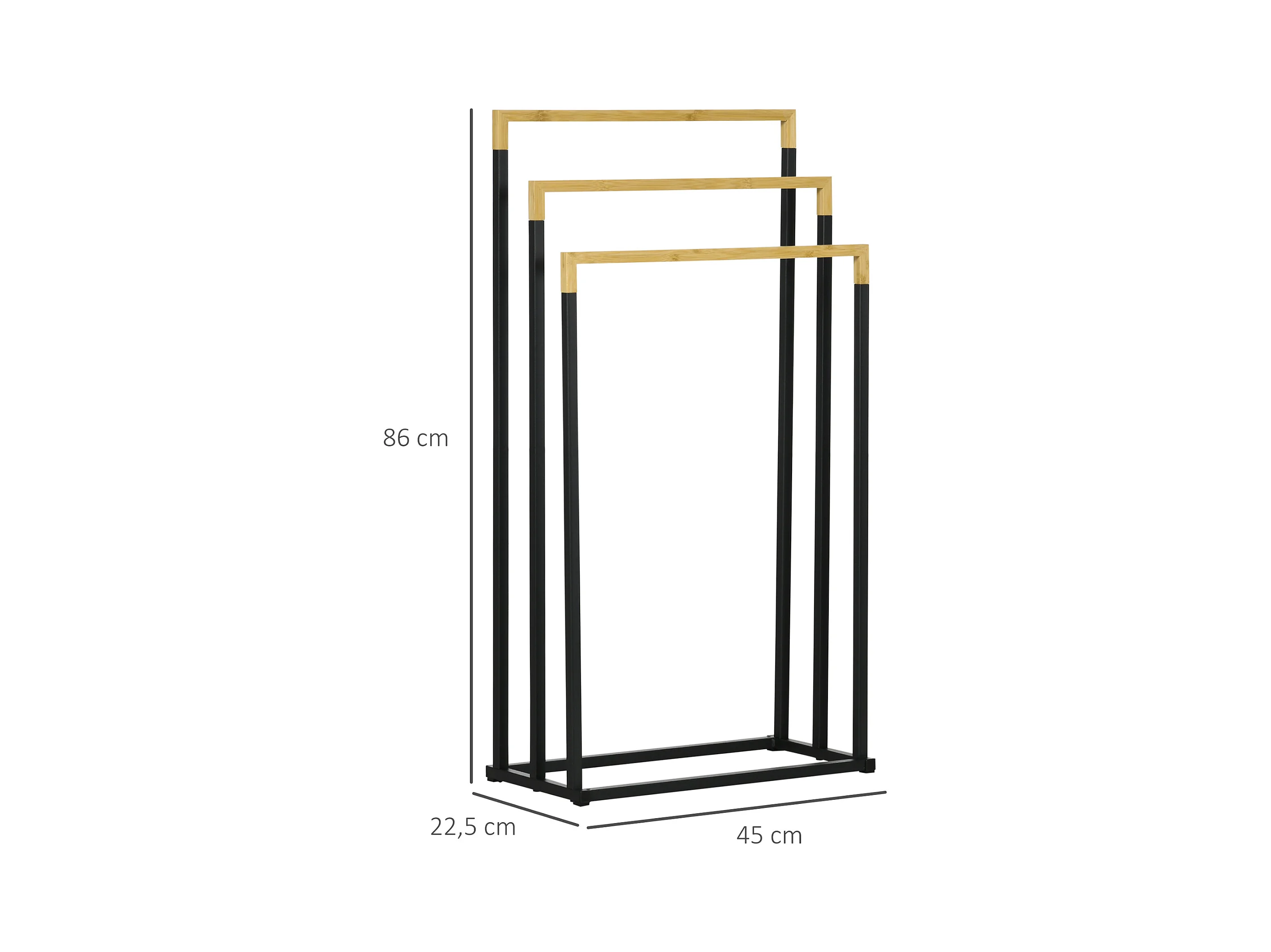 Porte-serviette autoportant 3 barres - dim. 45L x 22l x 86H cm - bois bambou acier noir