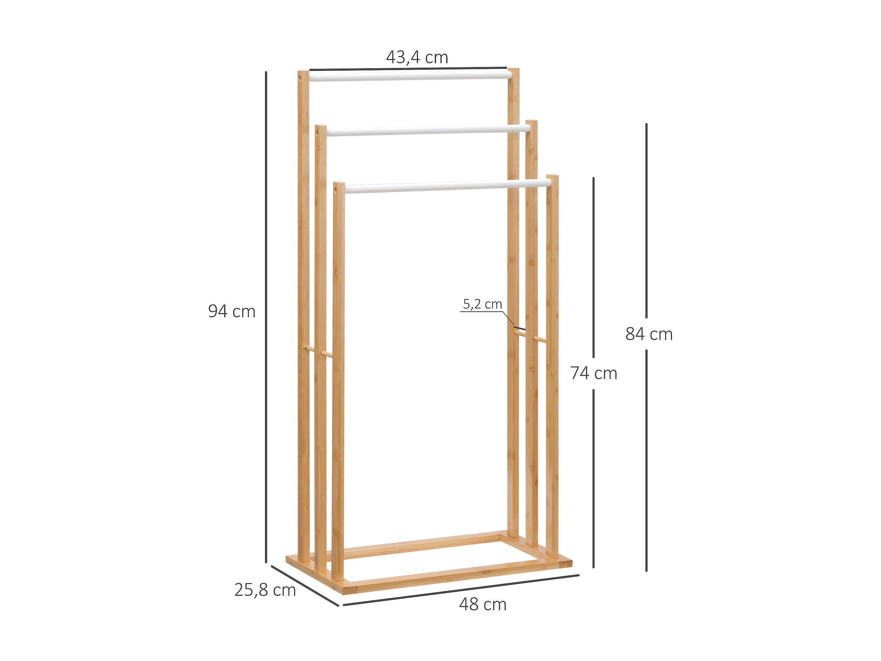 Porte-serviette autoportant 3 barres - dim. 48L x 25l x 94H cm - bois bambou acier blanc