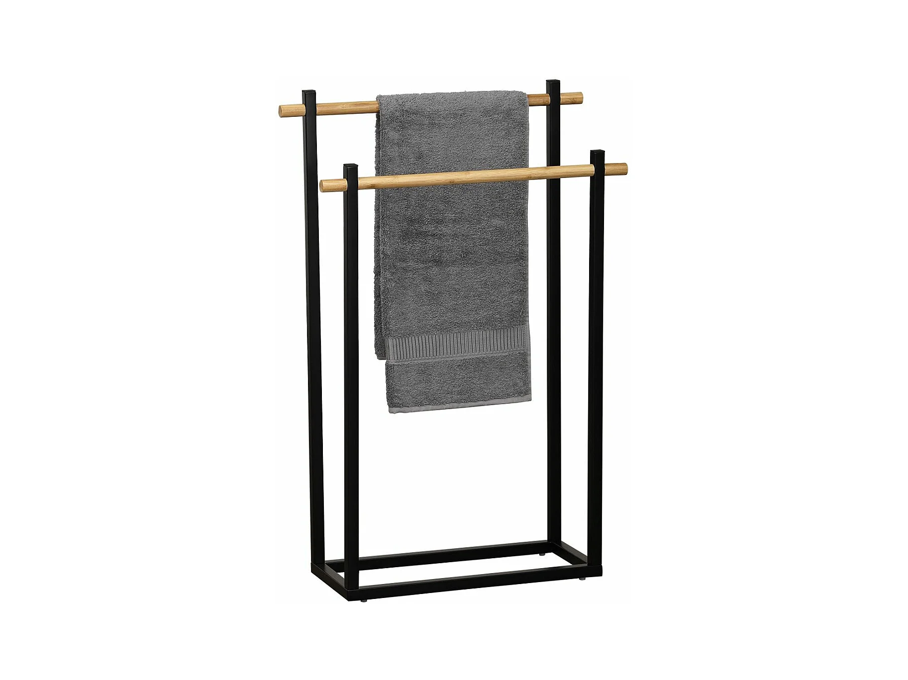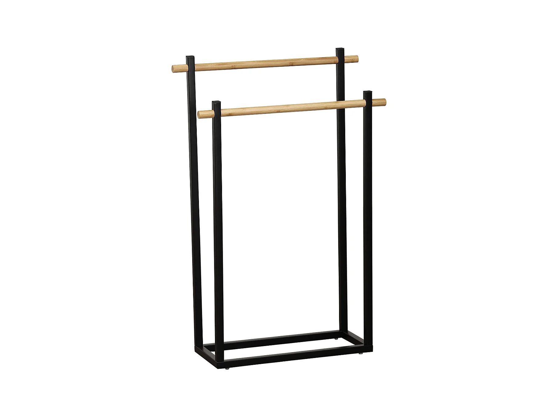 Porte-serviettes 2 Barres en Métal et Bambou H 82 cm
