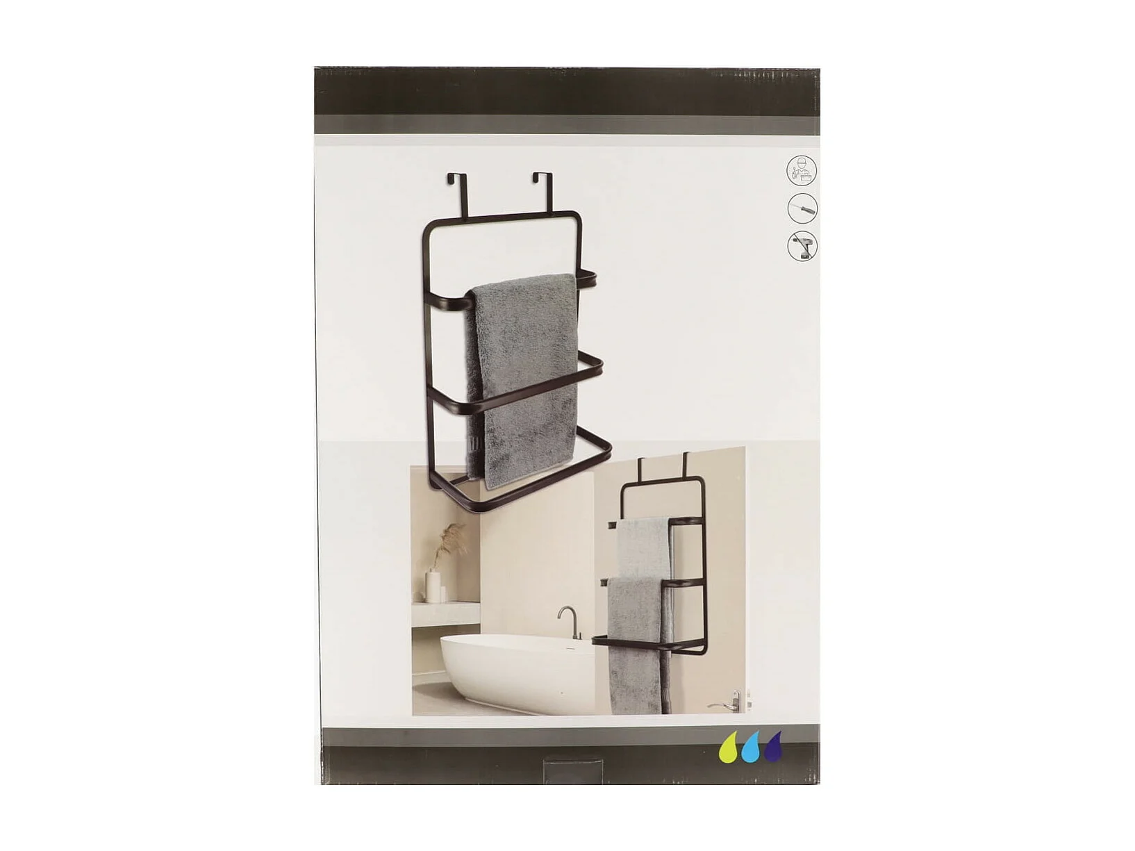 Porte-serviettes 3 barres en métal noir à suspendre sur porte