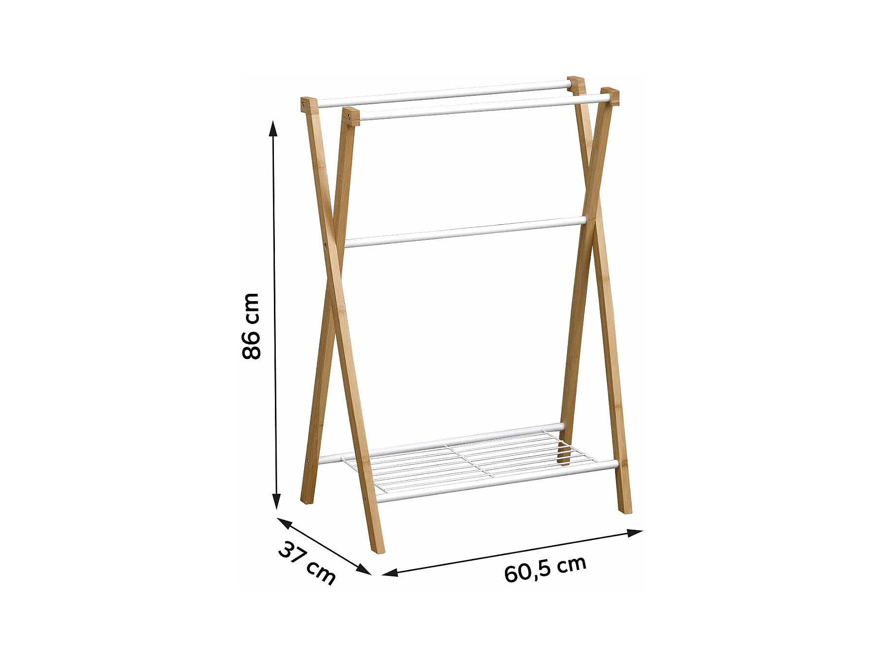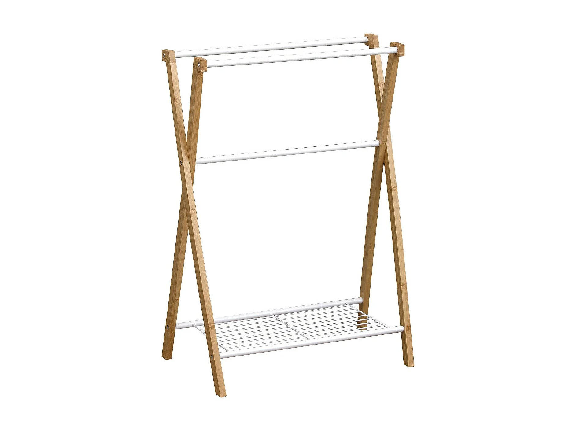 Porte-serviettes 3 Barres et 1 Tablette en Bambou et Métal Blanc H 86 cm