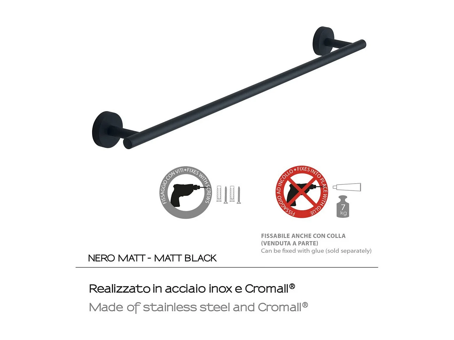 Porte-Serviettes De Salle De Bain 60Cm Acier Noir Mat | Atene