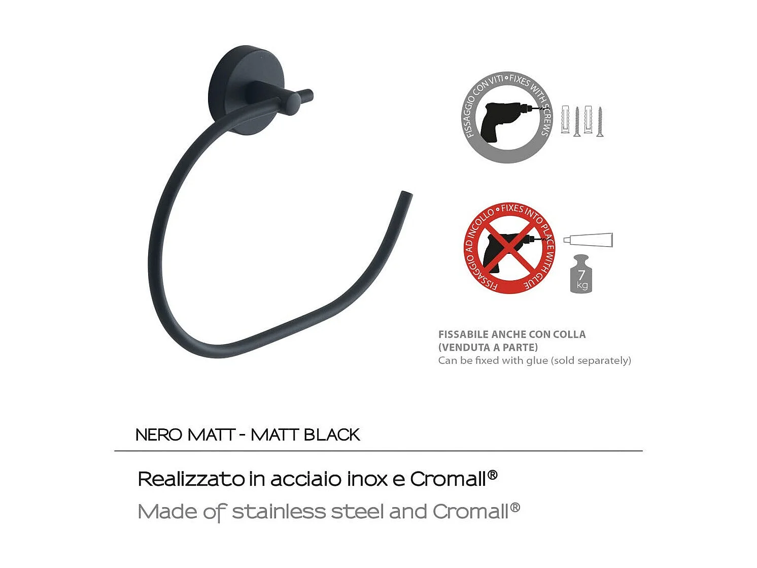 Anneau Porte-Serviettes Mural Noir Mat | Atene