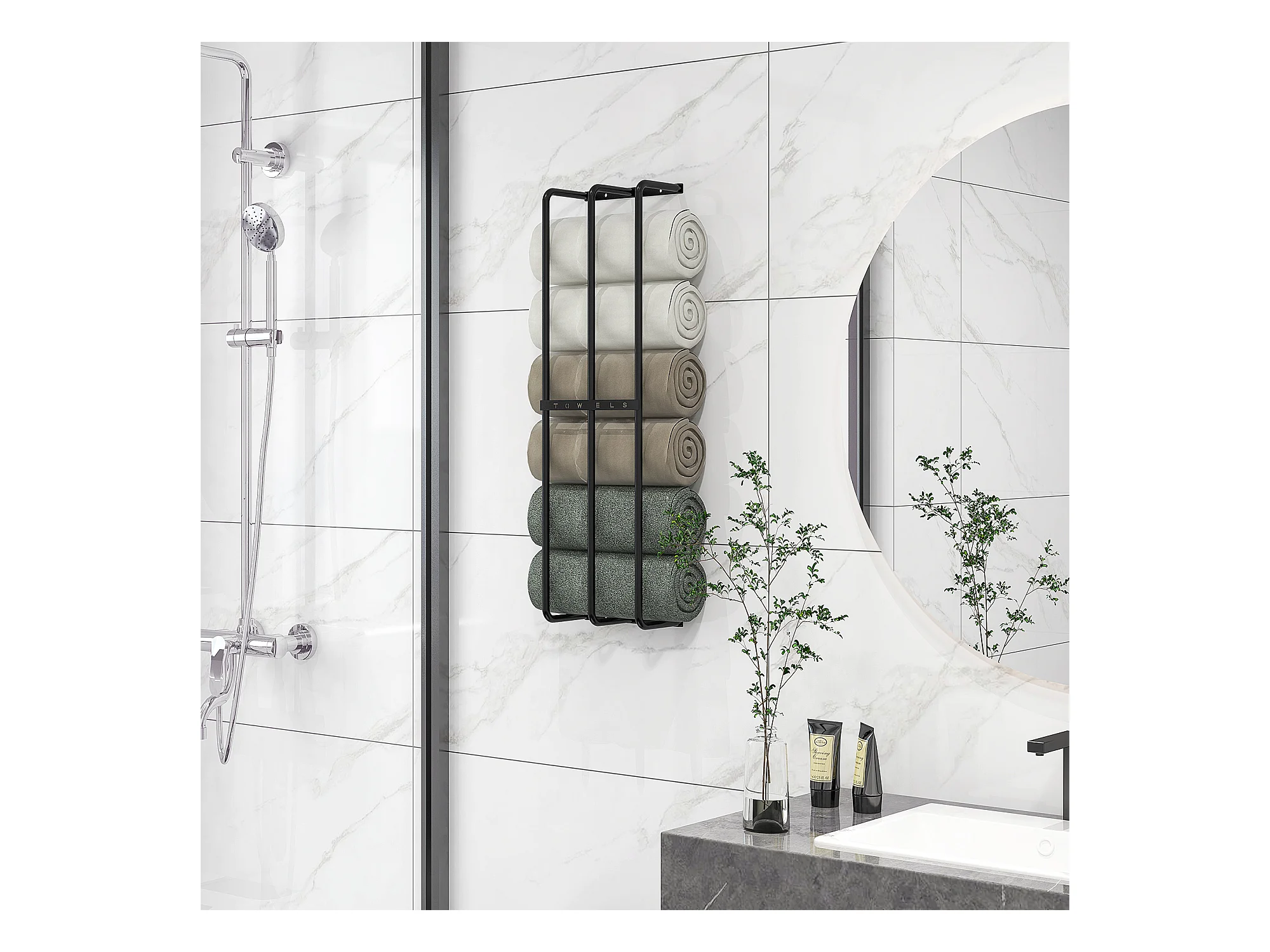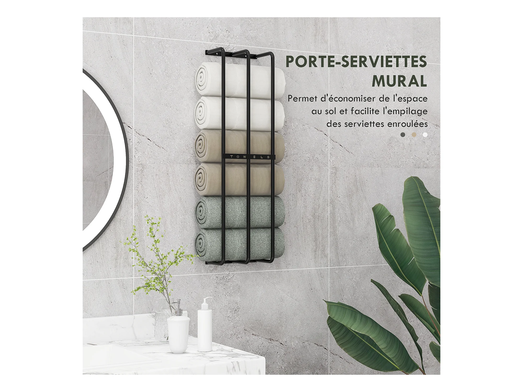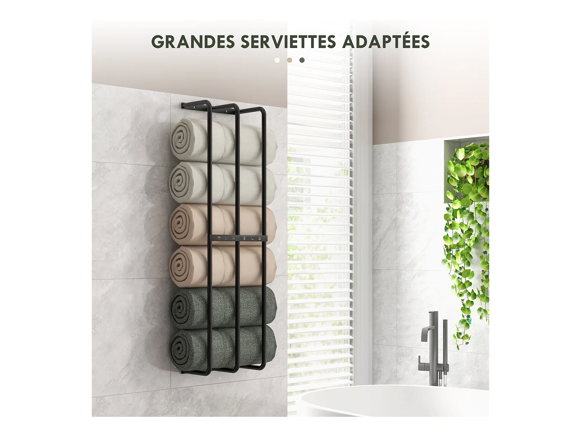 Porte-serviettes mural 3 barres - 6 serviettes max. - dim. 21L x 12l x 74H cm - métal noir