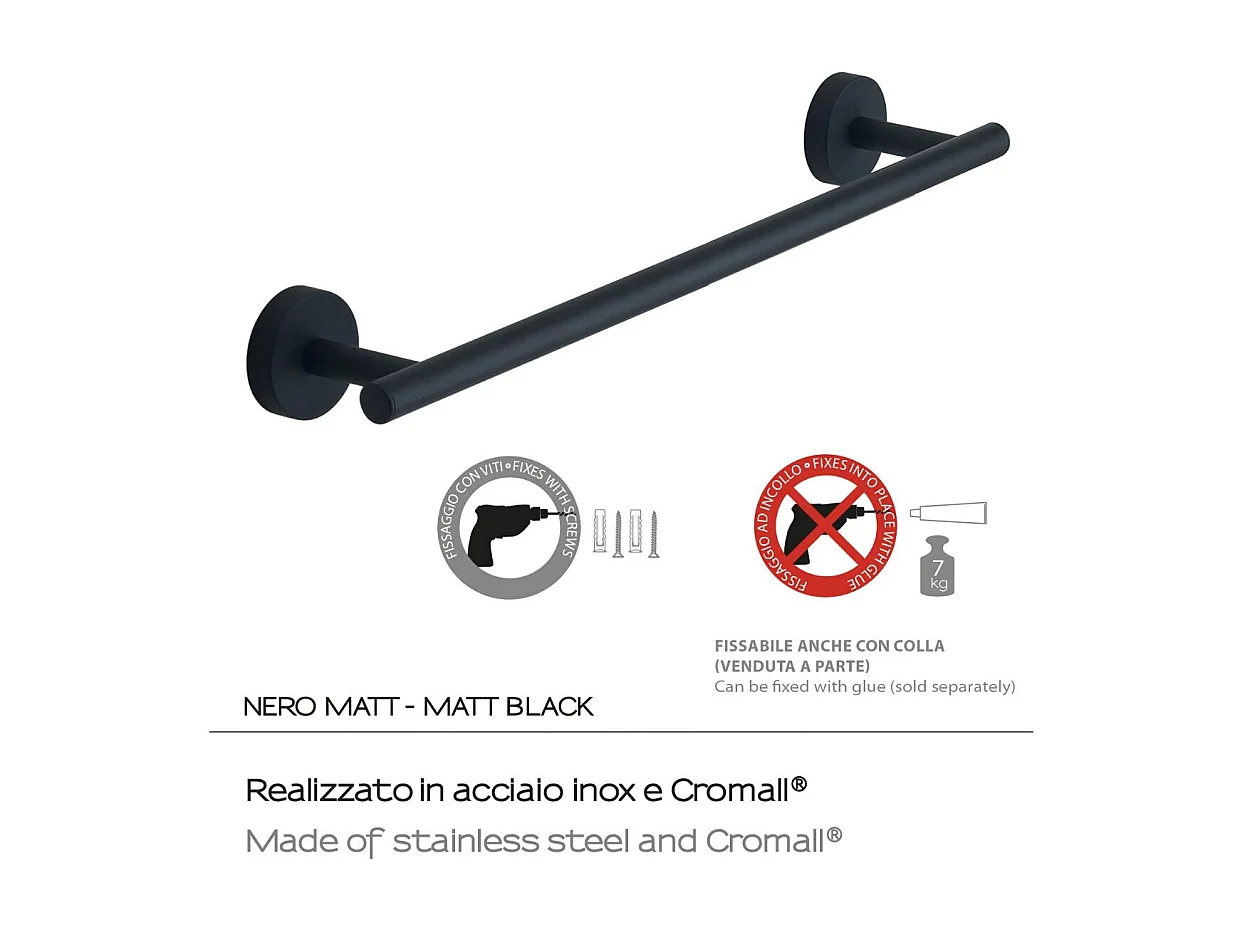 Porte-Serviettes 45 Cm Acier Inoxydable Noir Mat Fixation Murale | Violetta