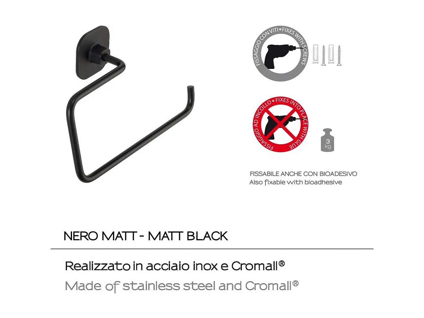 Porte-Serviettes À Charnière En Acier Inoxydable Noir Mat | Violetta