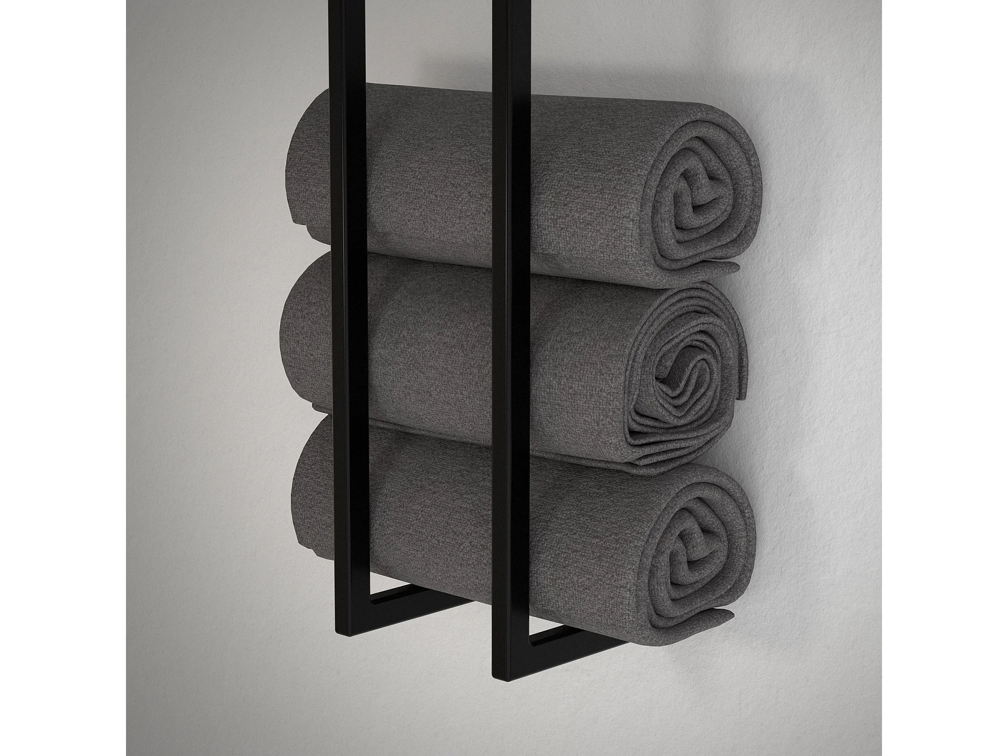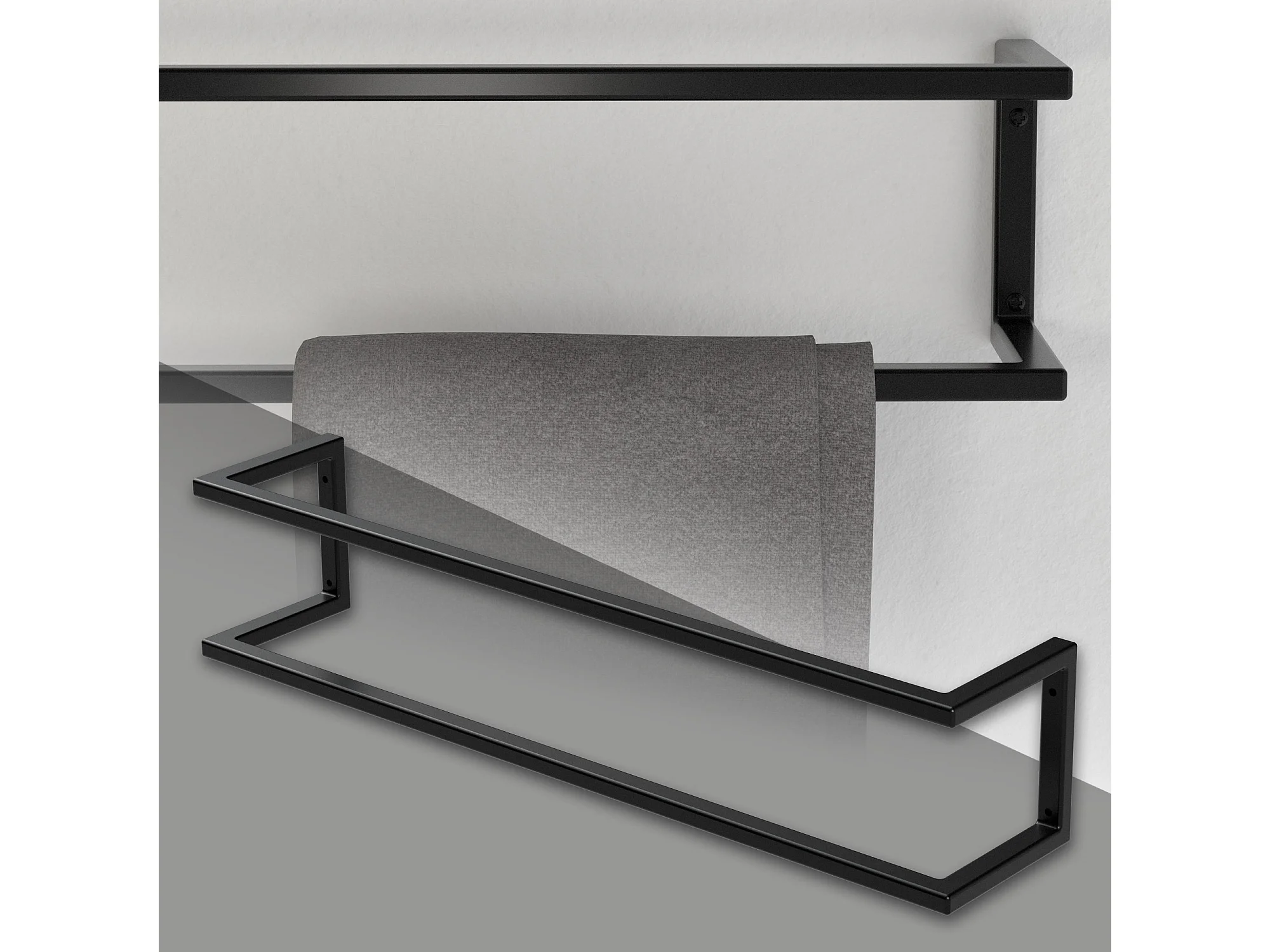 Porte-serviettes support mural pour salle de bain cuisine 15x15x70 cm noir acier