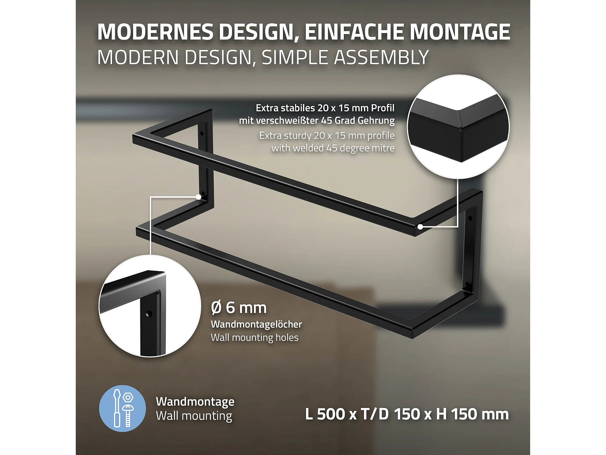 Porte-serviettes support mural salle de bain cuisine 15x15x50cm anthracite acier