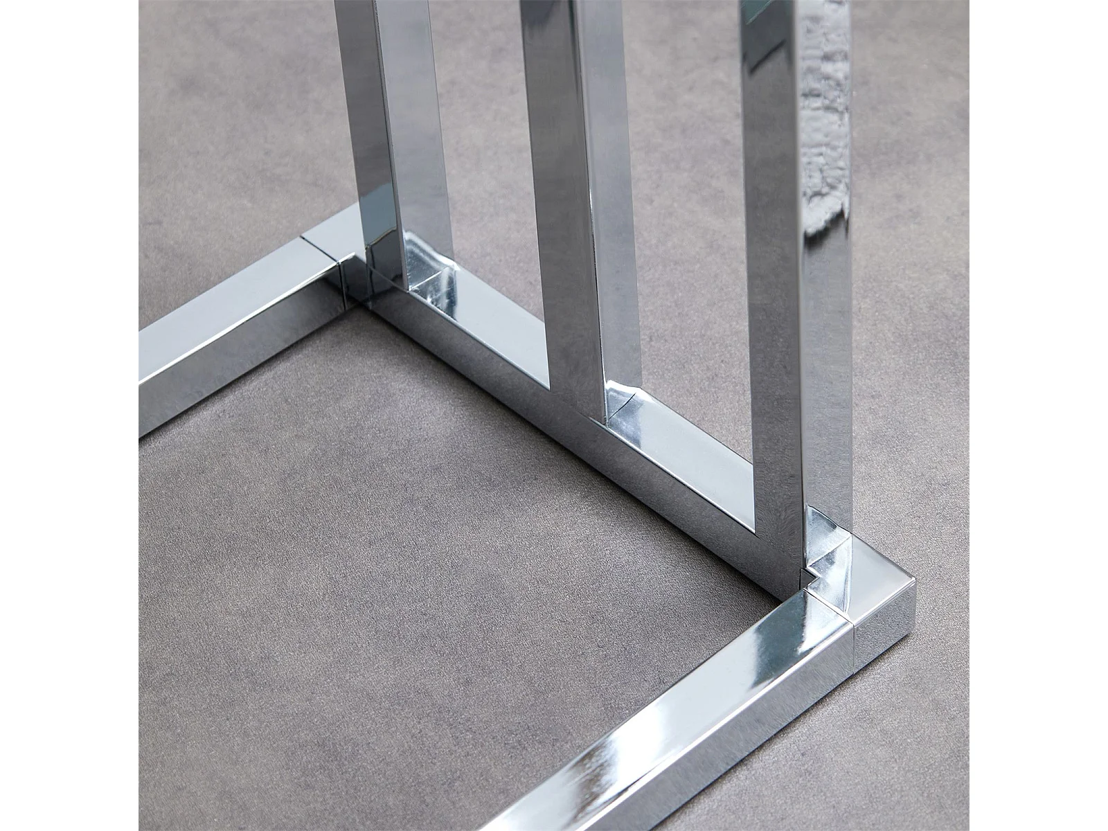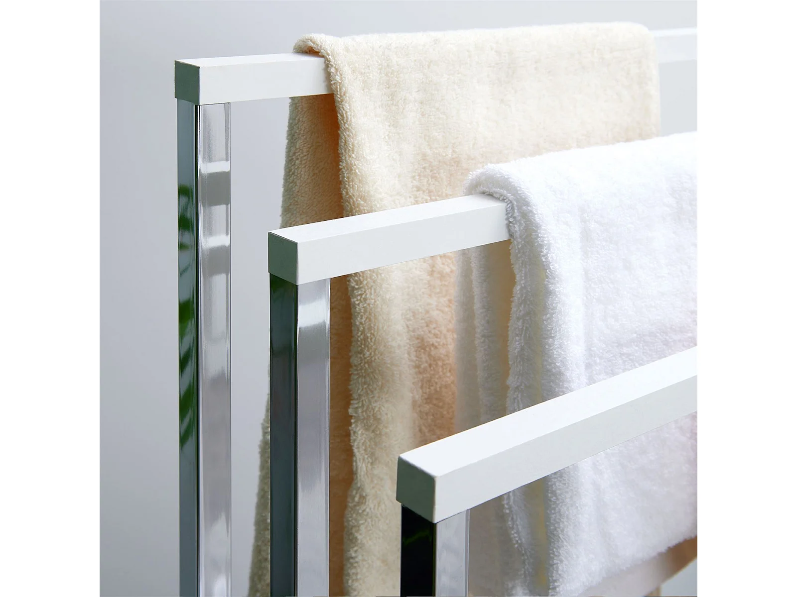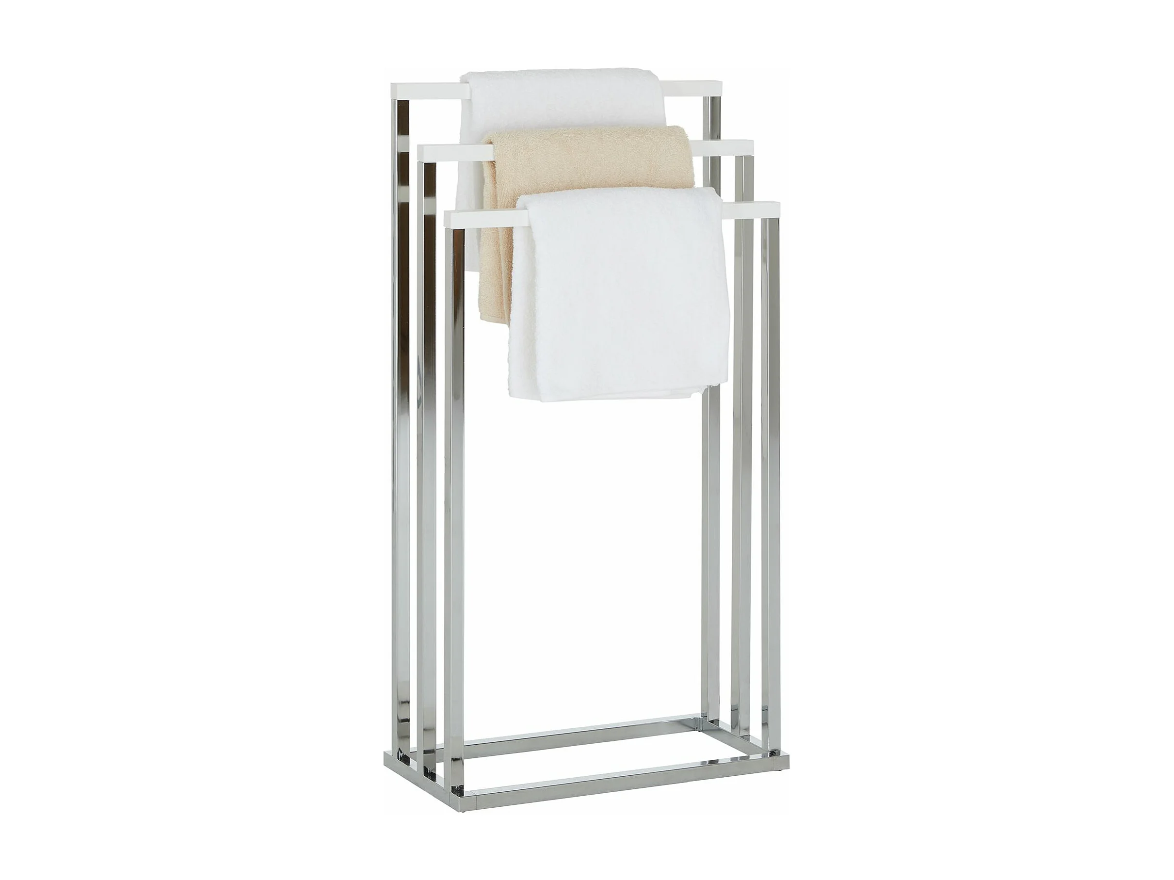 Porte-serviettes sur pied EDOARDO portant pour linge de bain ou vêtements avec 3 tringles, en métal chromé et bois blanc