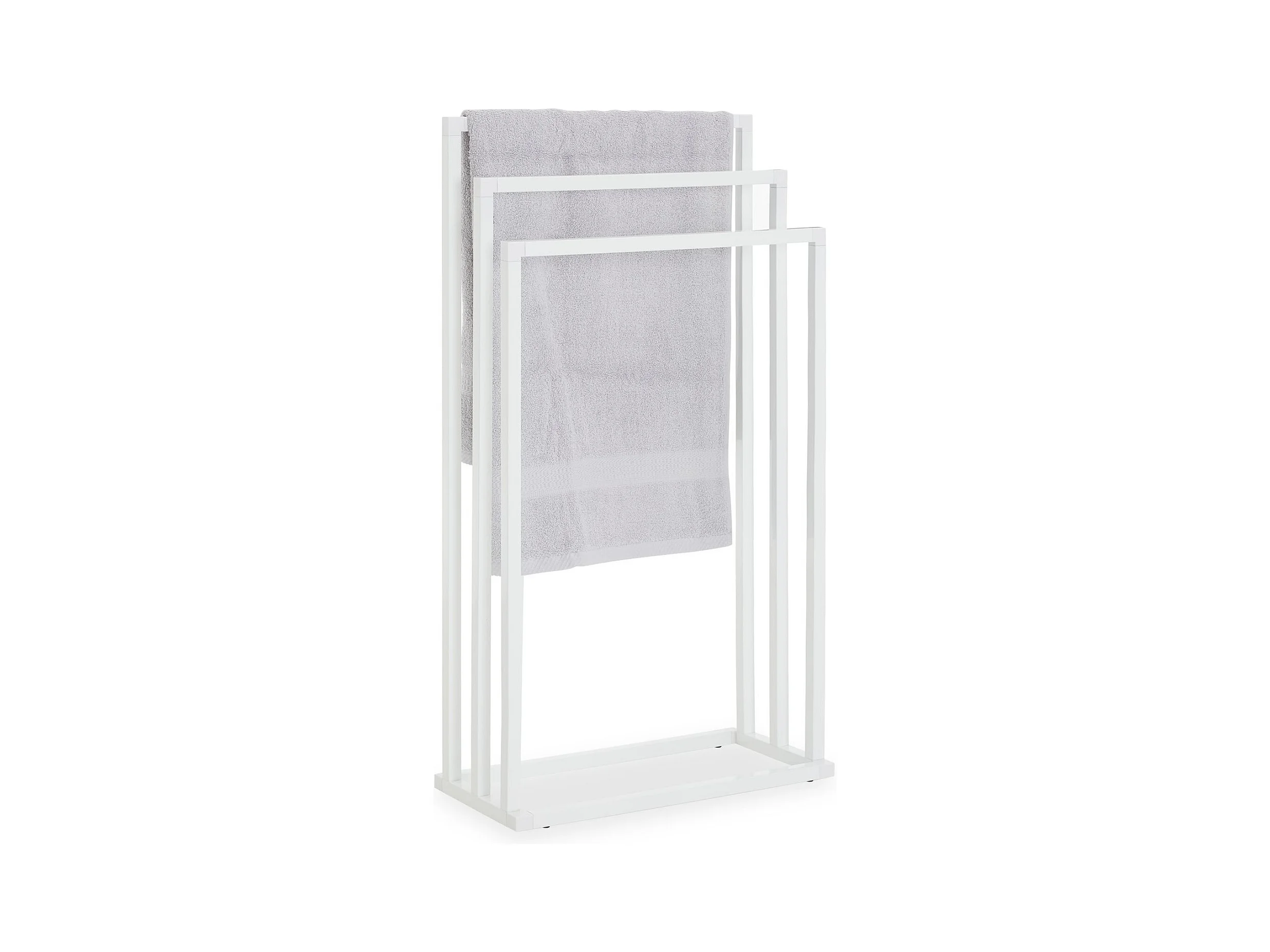 Porte Serviette Salle de Bain MAILO H 84 cm en Métal Blanc, Design Simple et Moderne, Sur Pieds avec Socle Stable