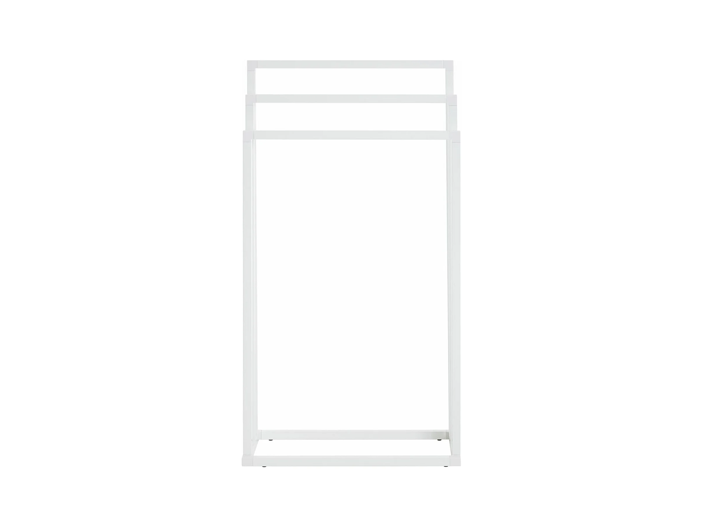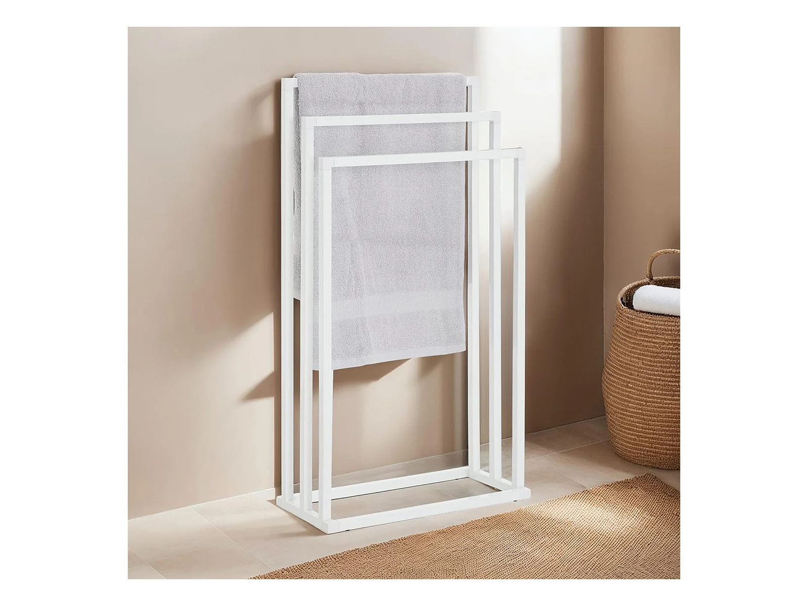 Porte-serviettes sur pied KUNO portant pour vêtements et linge de salle de bain avec 3 niveaux d'étendage, structure en métal blanc