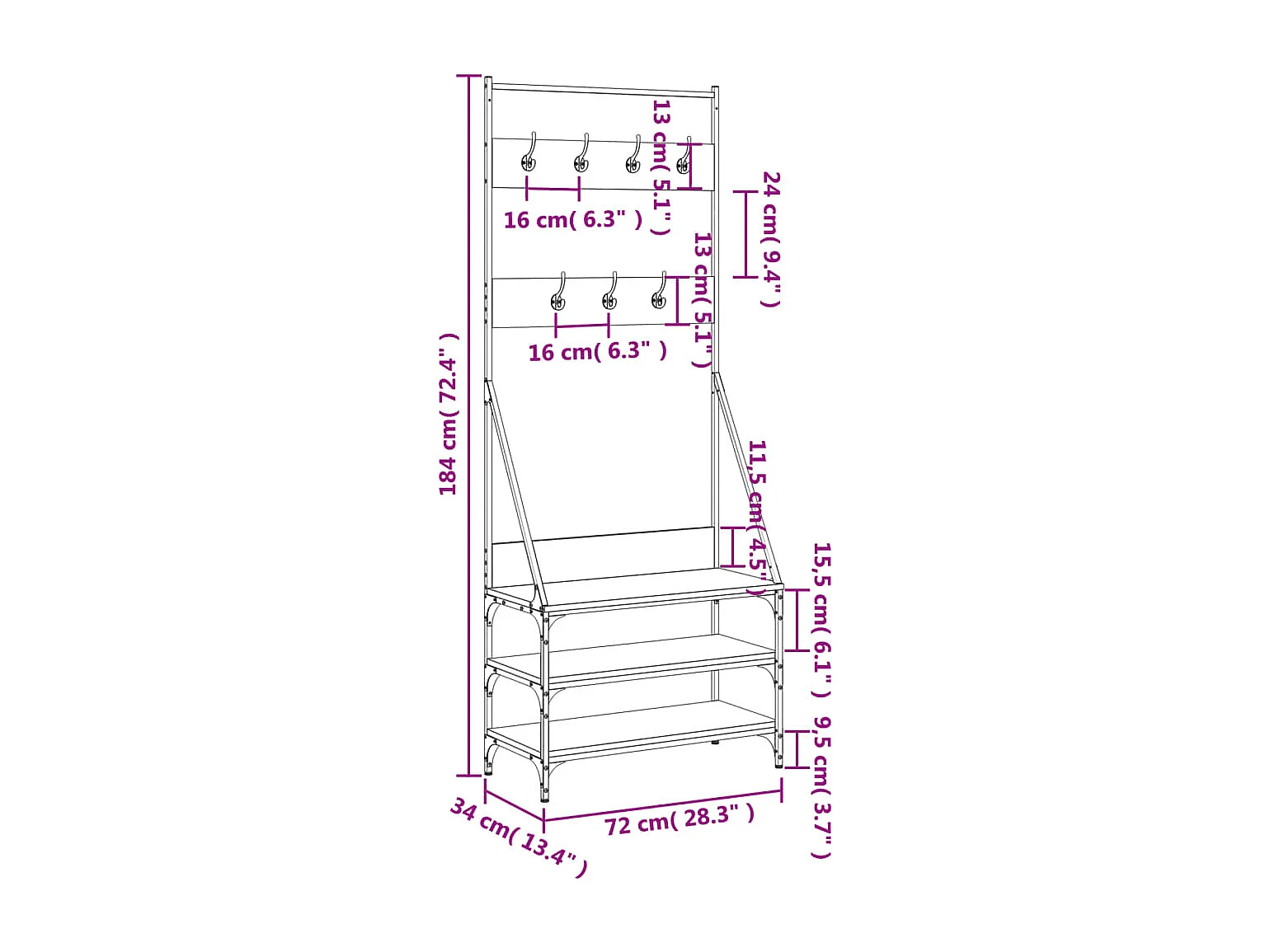 Porte-vêtements et rangement des chaussures noir 72x34x184 cm