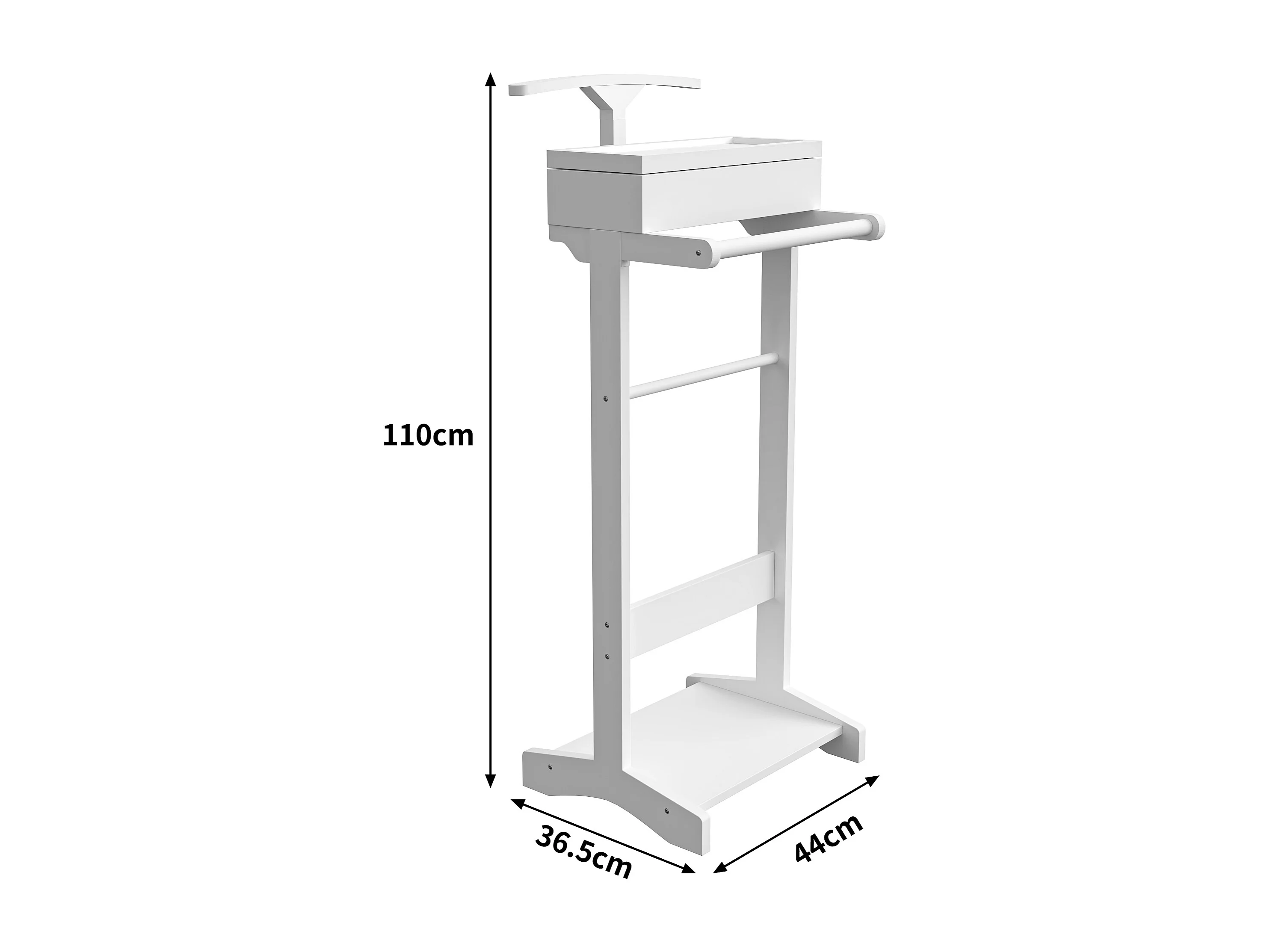 Porte-vêtements portable avec rangement, design multifonctionnel, MDF et bois massif, blanc (44x36.5x110 cm)