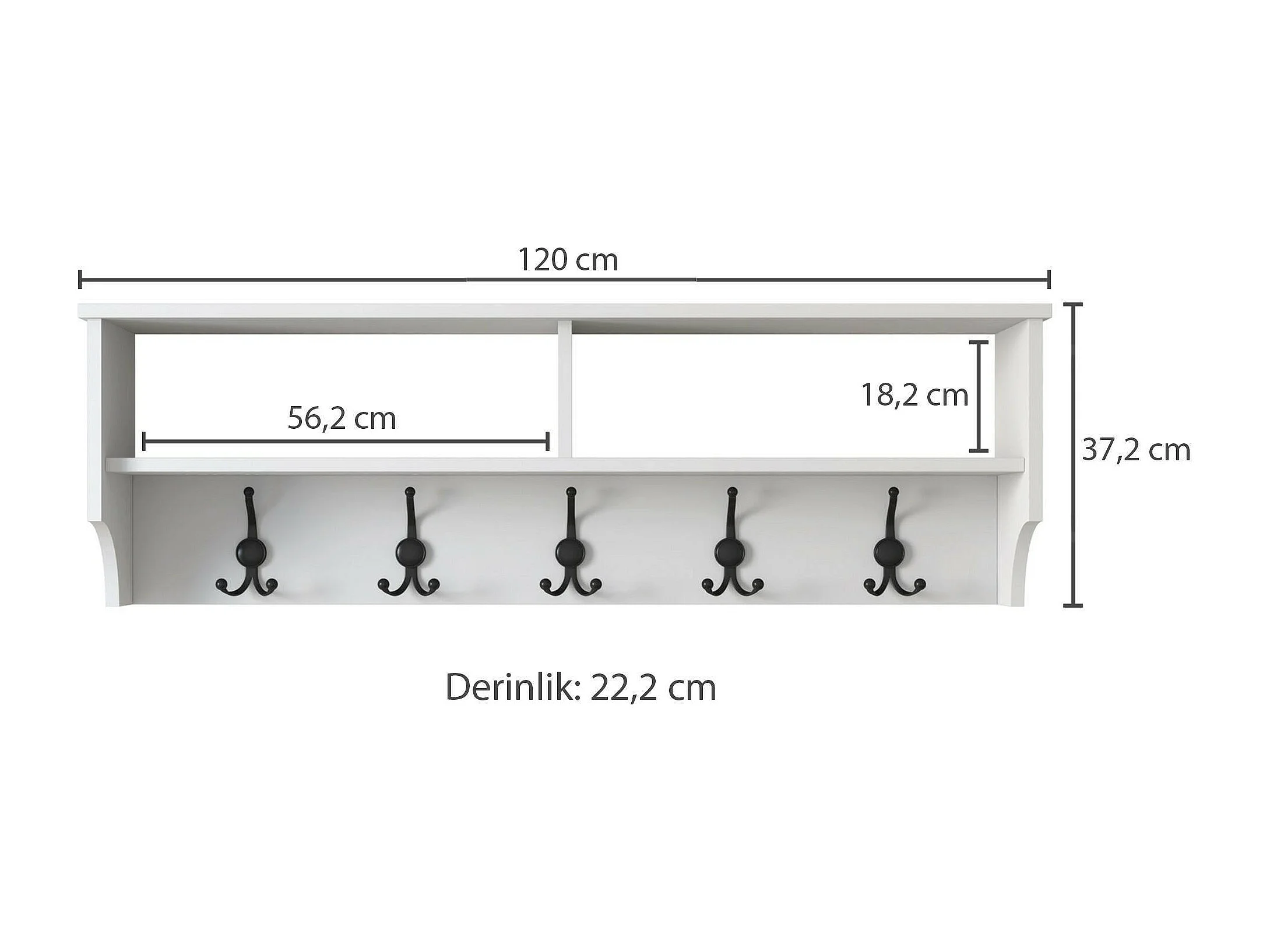 Portemanteau Dpietrotagliaferr, Portemanteau, Porte-vêtements polyvalent, Cintre mural, 120x22 h37 cm, Blanc
