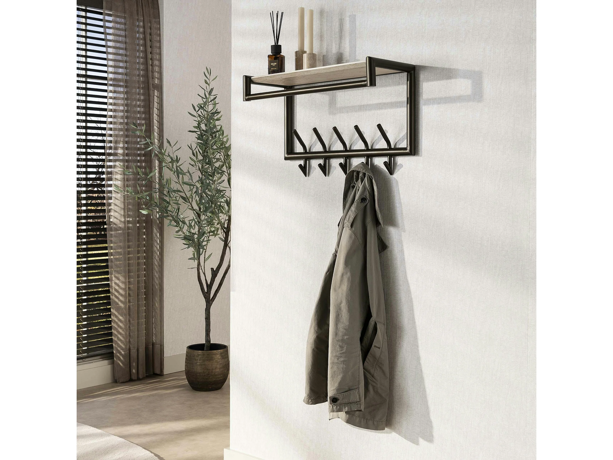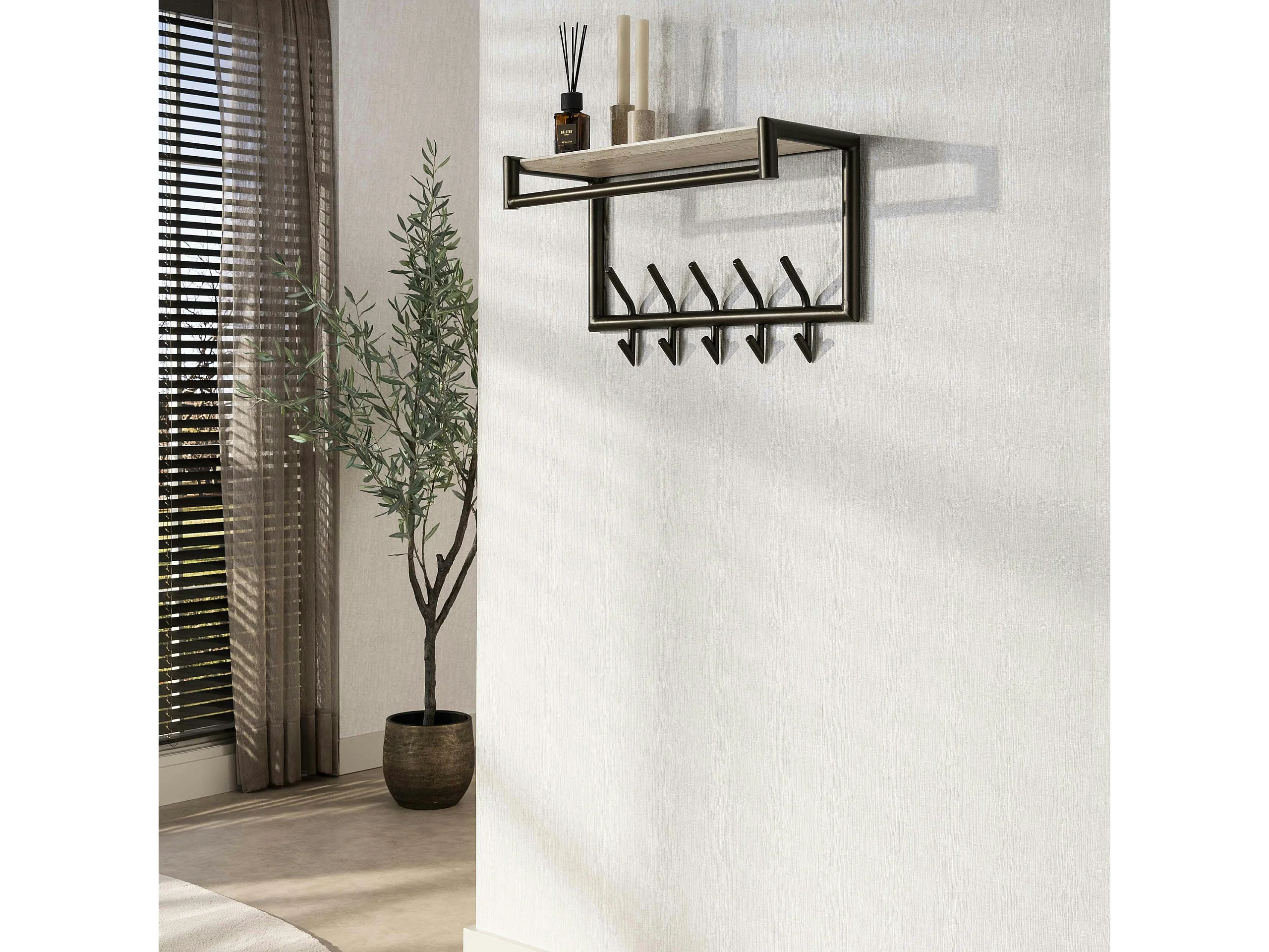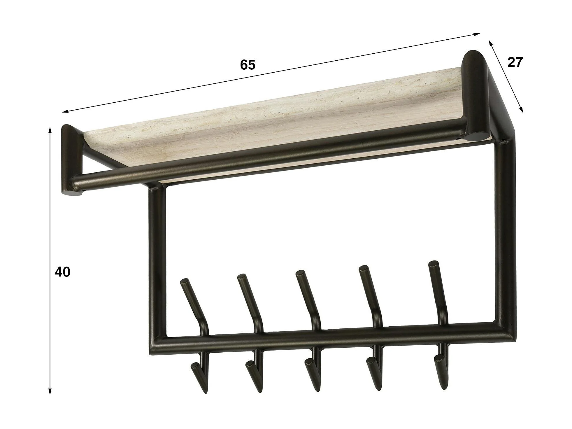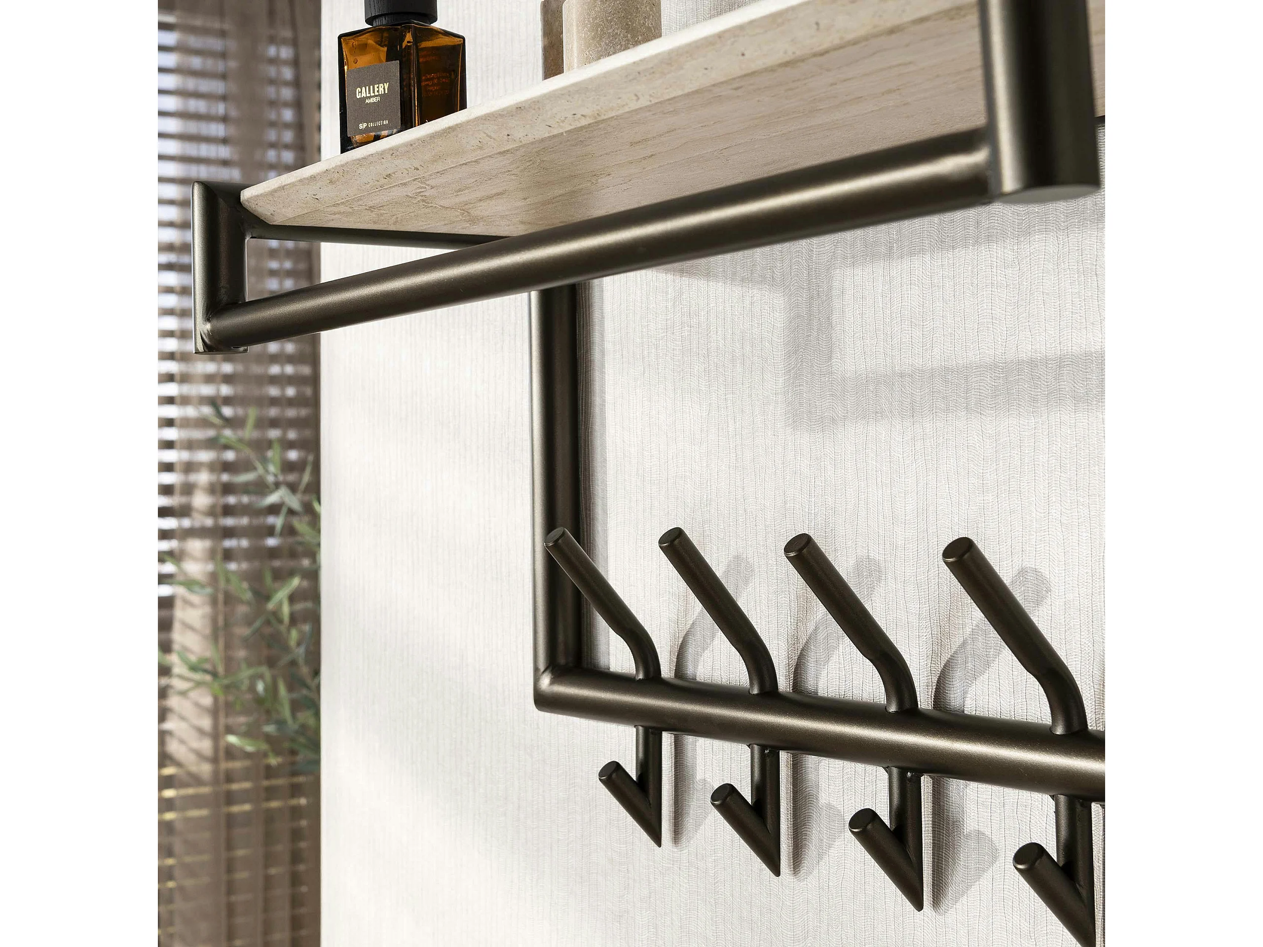 Portemanteau métal fini bronze 10 crochets 1 étagère RALF