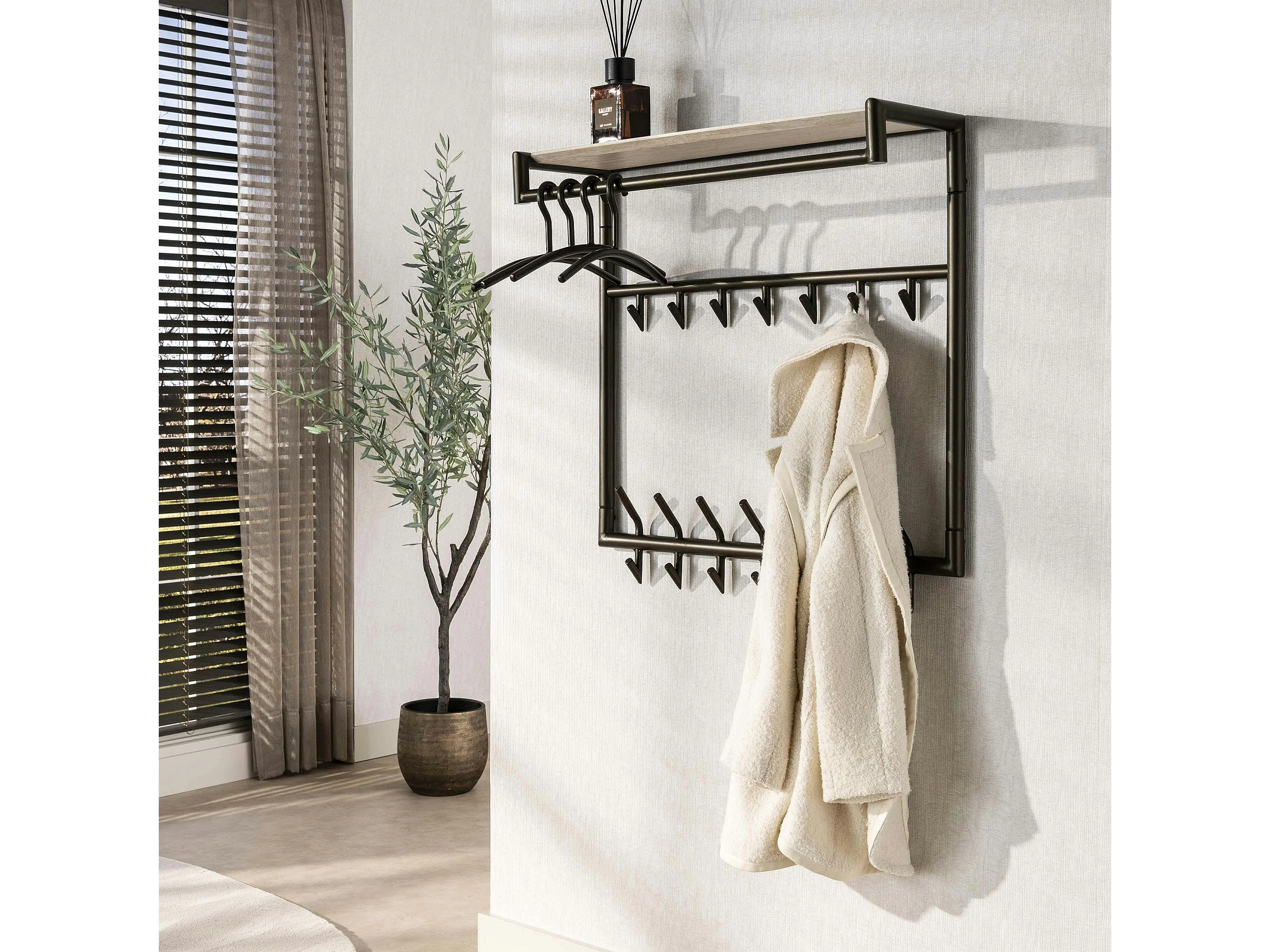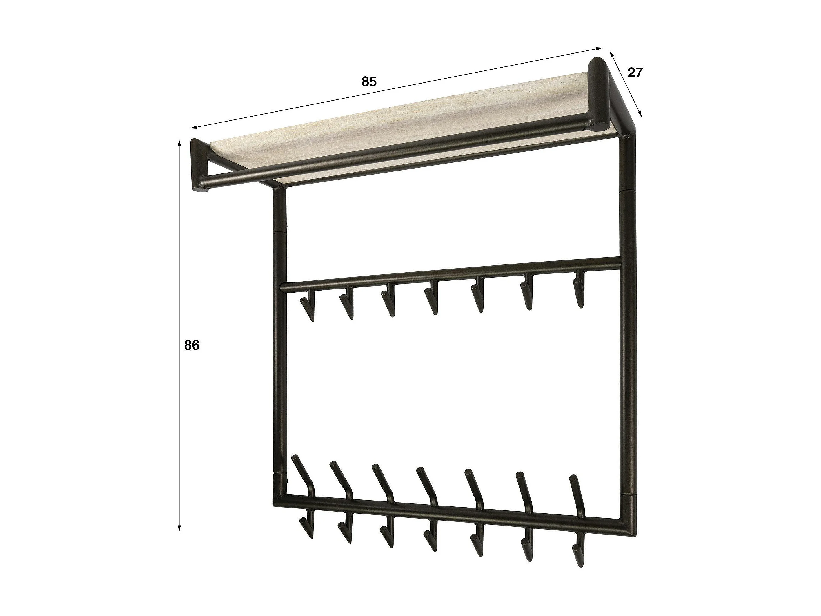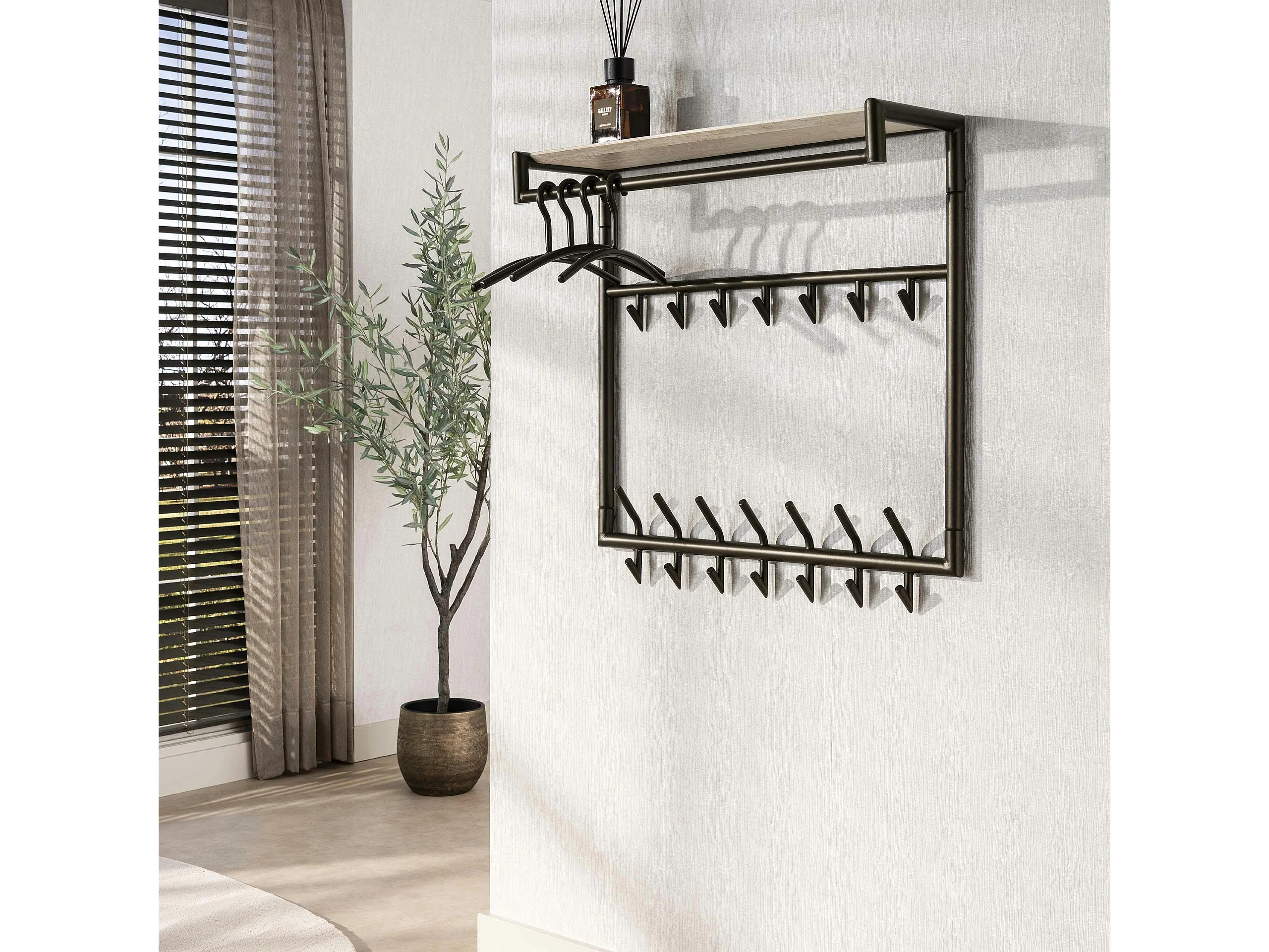 Portemanteau métal fini bronze 21 crochets 1 étagère RALF