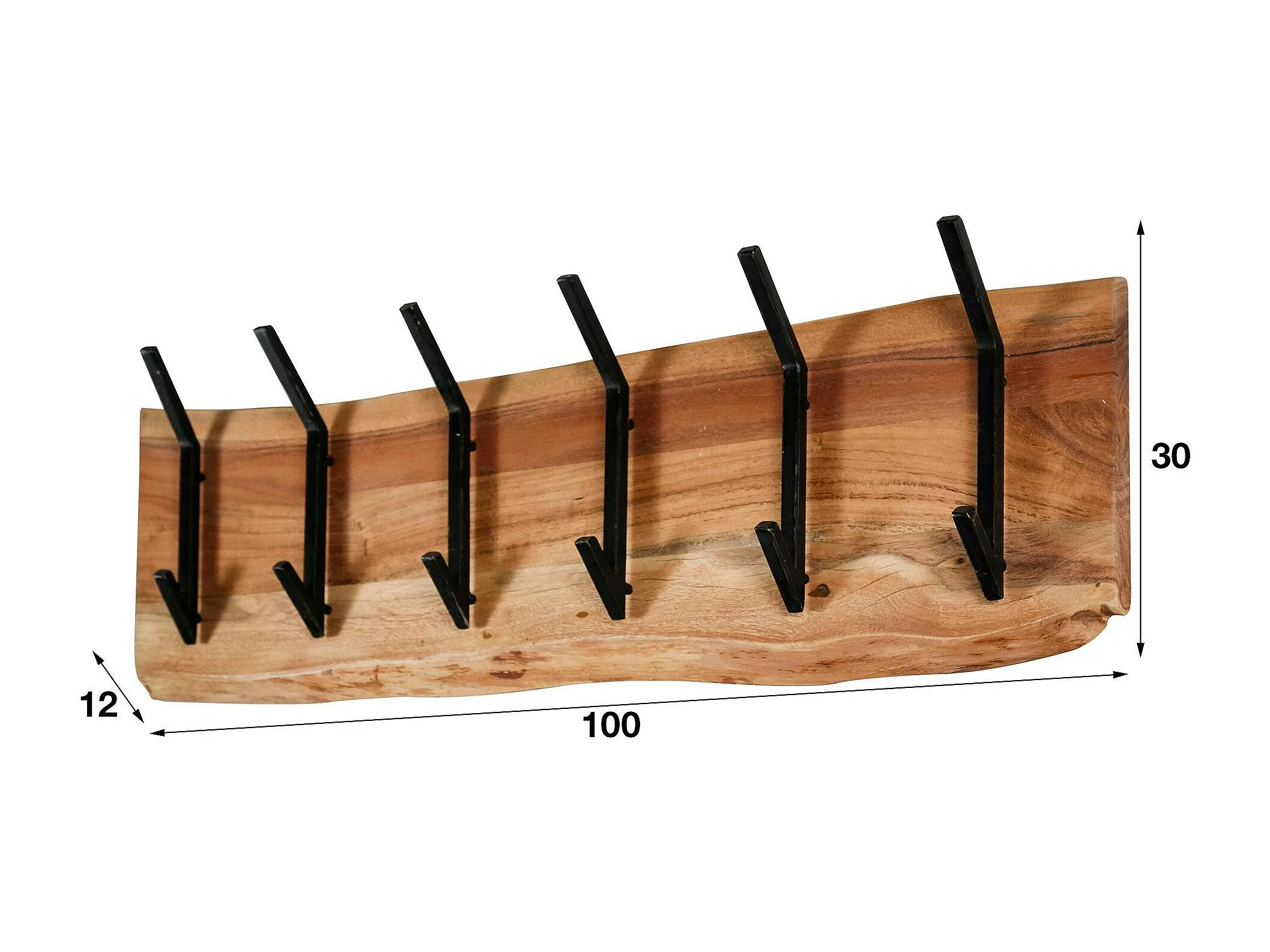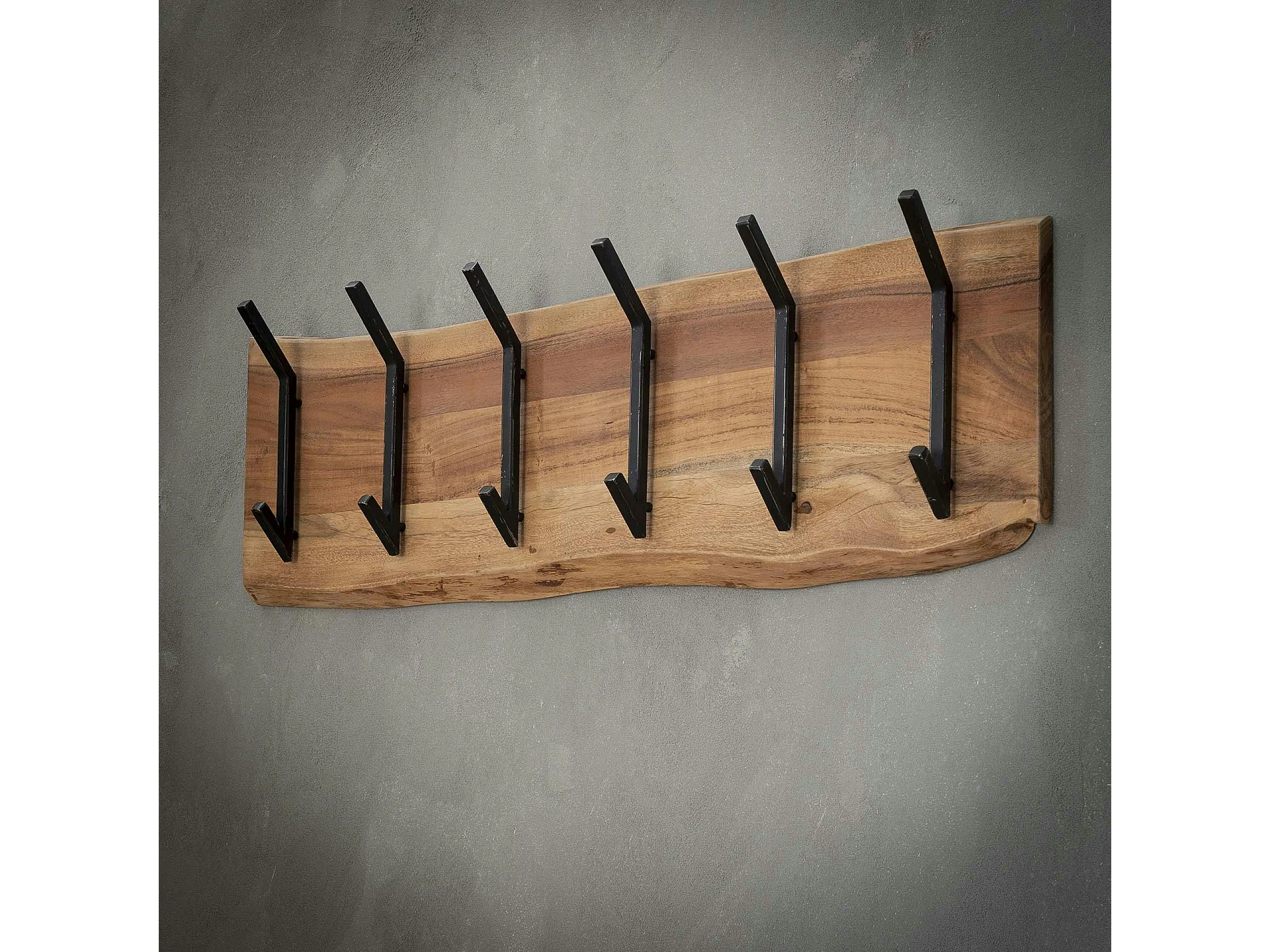 Portemanteau mural bois massif 6 double crochets TRIBECA