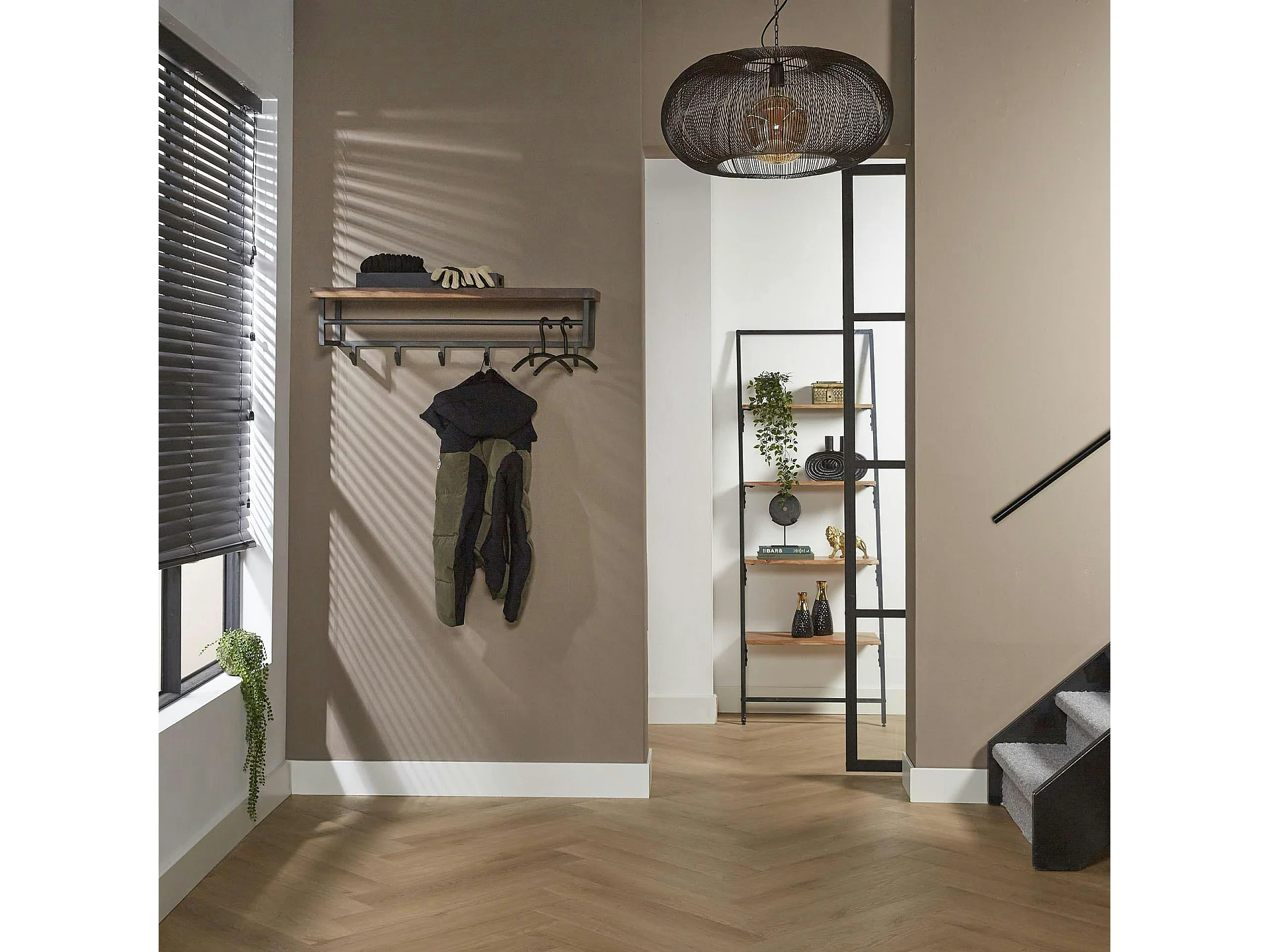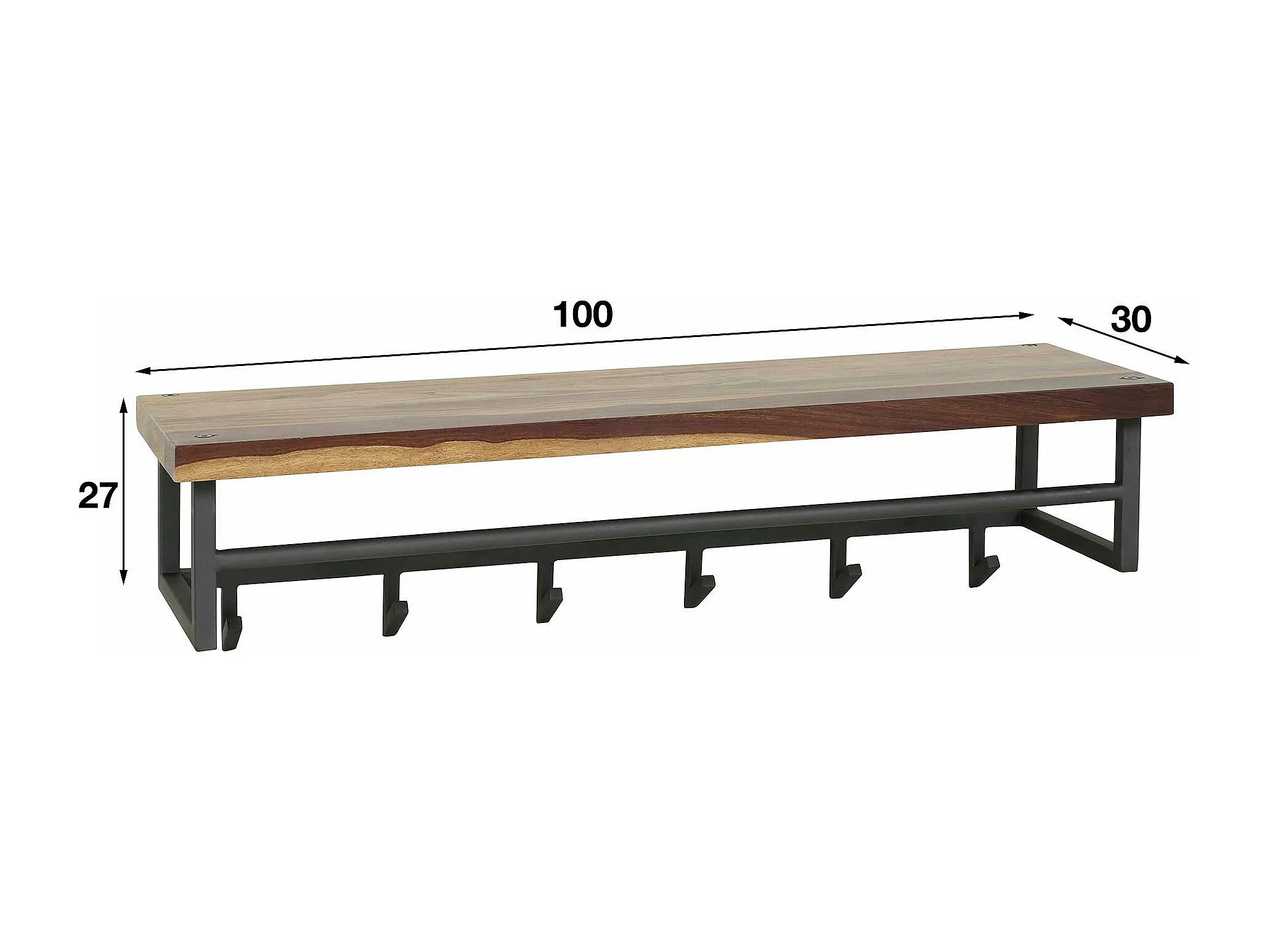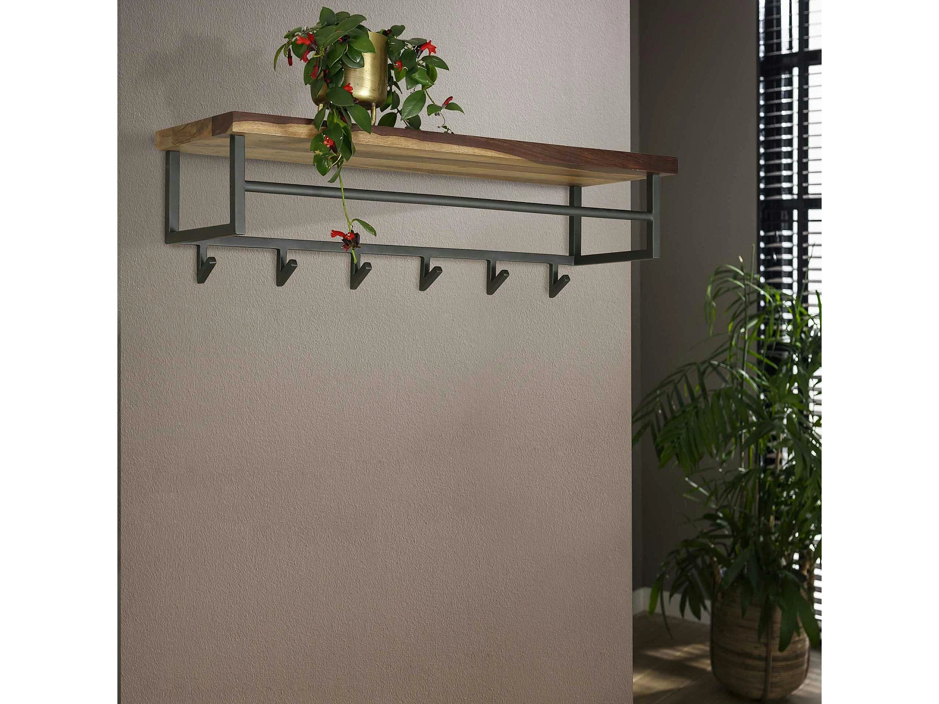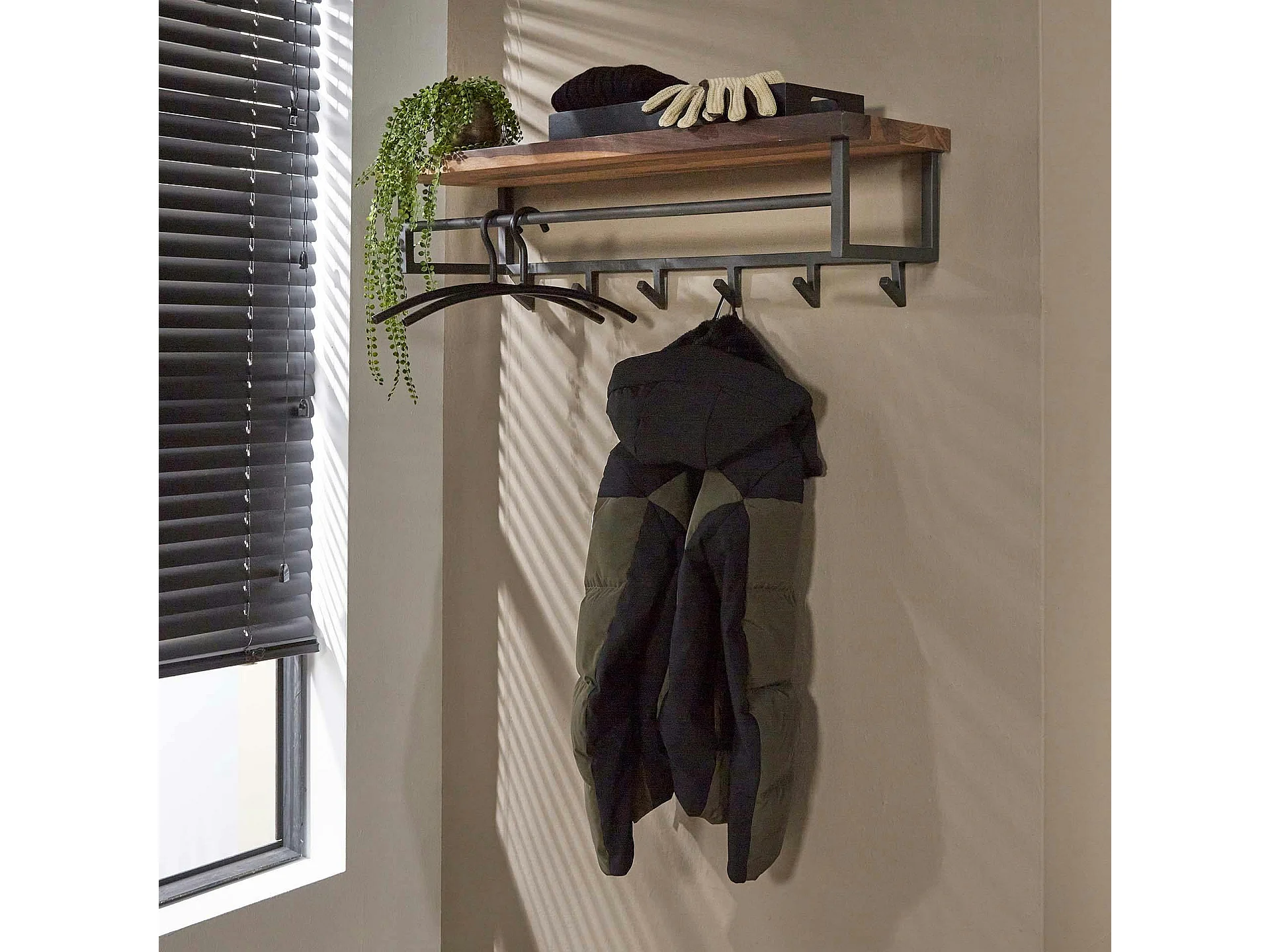 Portemanteau mural en bois de noyer 6 crochets, 1 étagère HALIFAX