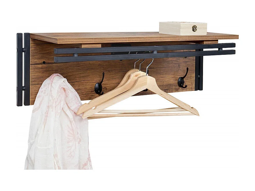 Portemanteau mural HWC-A27, 24x75x24cm, aspect chêne sauvage