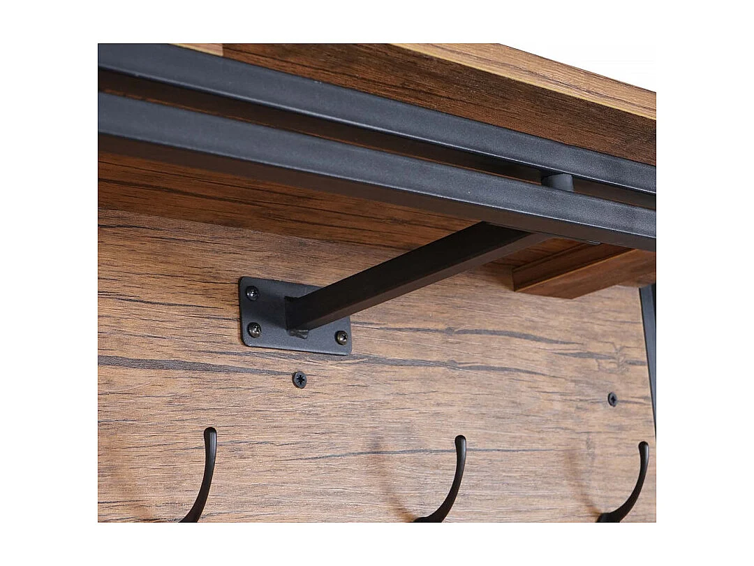 Portemanteau mural HWC-A27, 5 crochets, 100x80cm, aspect chêne