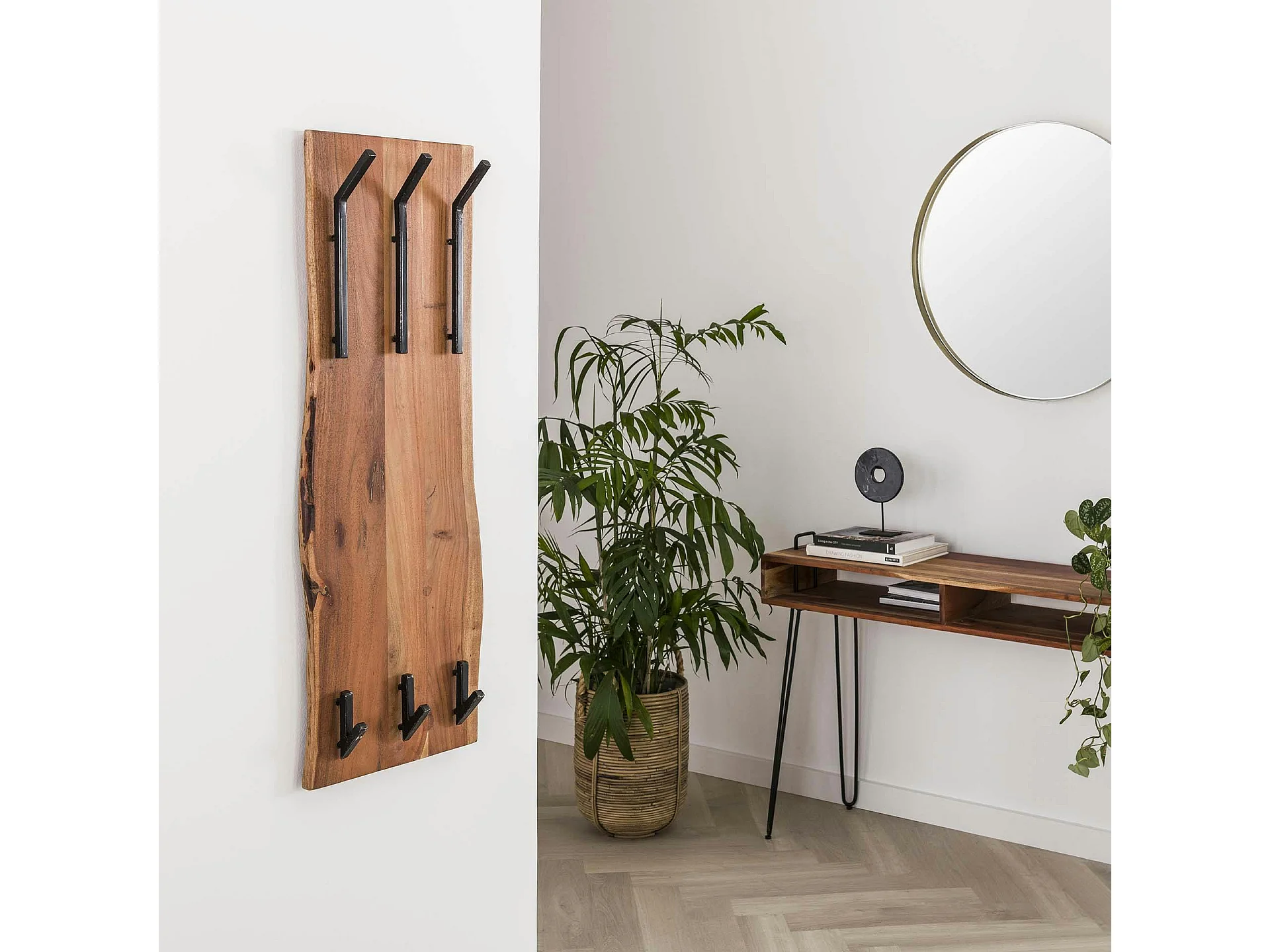 Portemanteau mural vertical bois massif 6 crochets TRIBECA