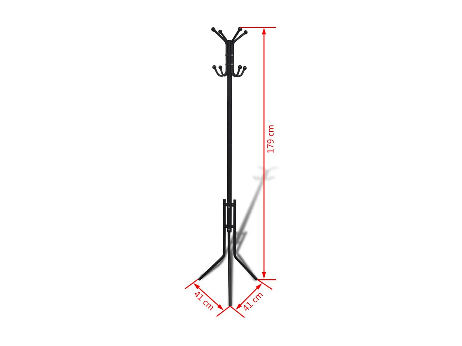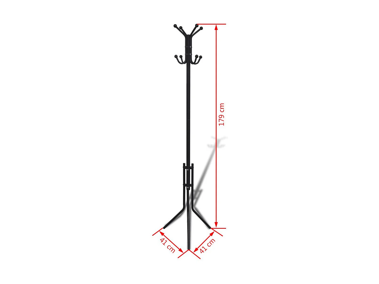 Porte-manteaux ARIST portant pour vêtements sur pied hauteur 174 cm avec 8 crochets, meuble d'entrée en métal laqué noir