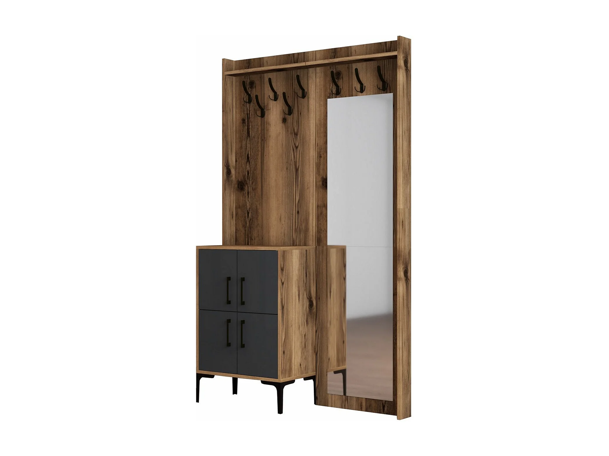 Portemanteaux 4 portes et Miroir Shera 120x200cm Bois Naturel et Anthracite