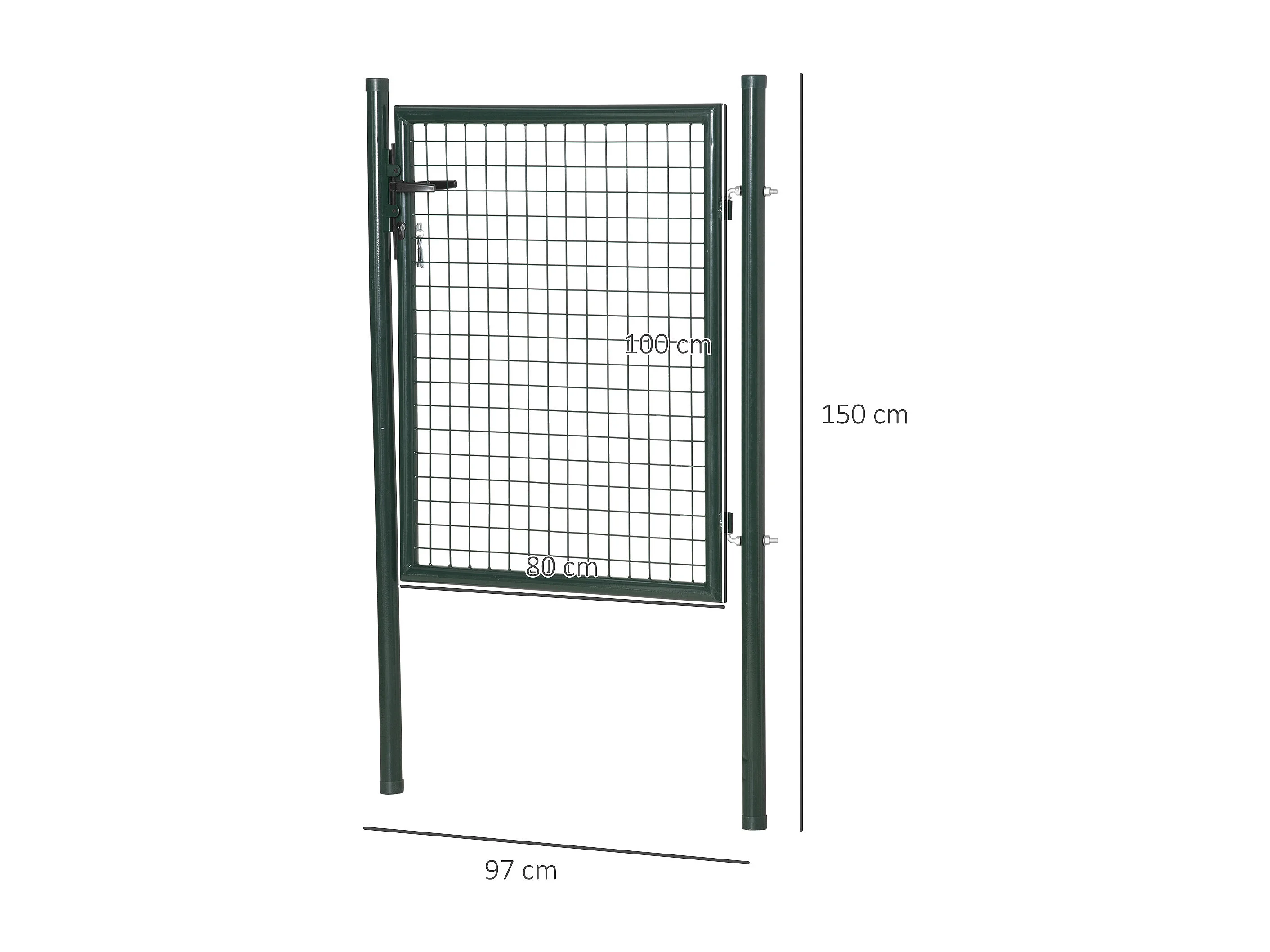 Portillon grillagé dim. 97L x 150H cm - gâche réversible, serrure encastrée, 3 clés - acier vert