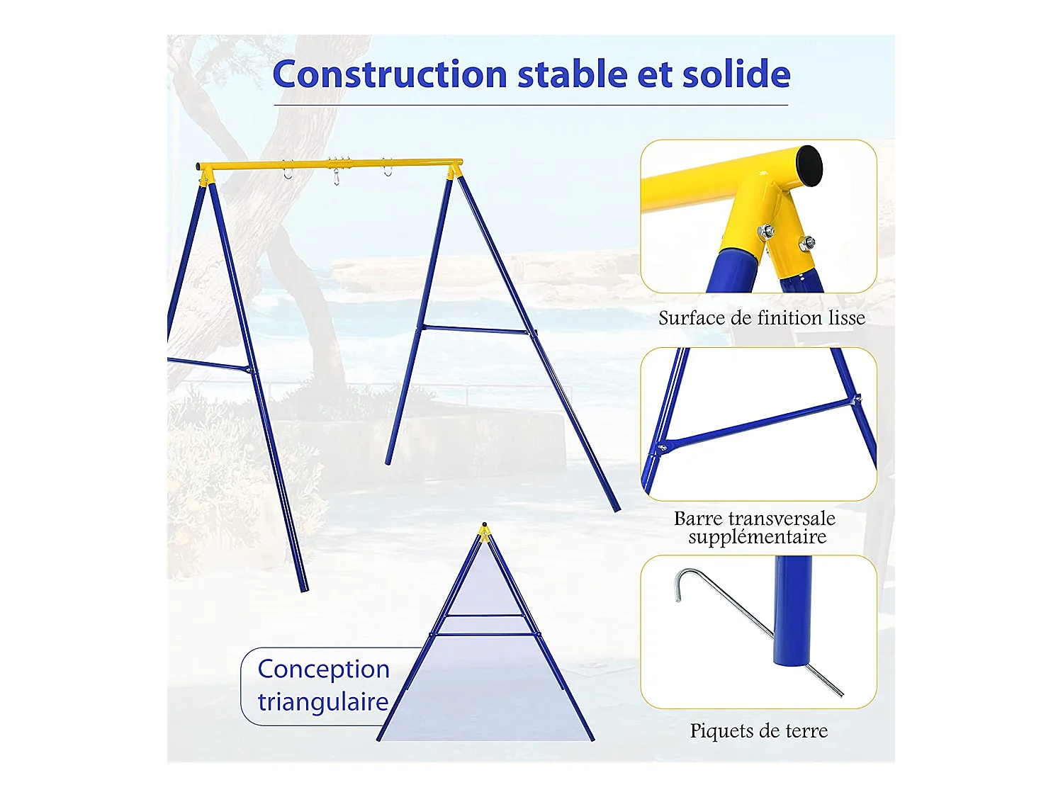 Portique de Balançoire pour Enfants en Forme de A Charge 250KG avec 2 Méthodes de Fixation Piquets d'Ancrage 194x180x180cm
