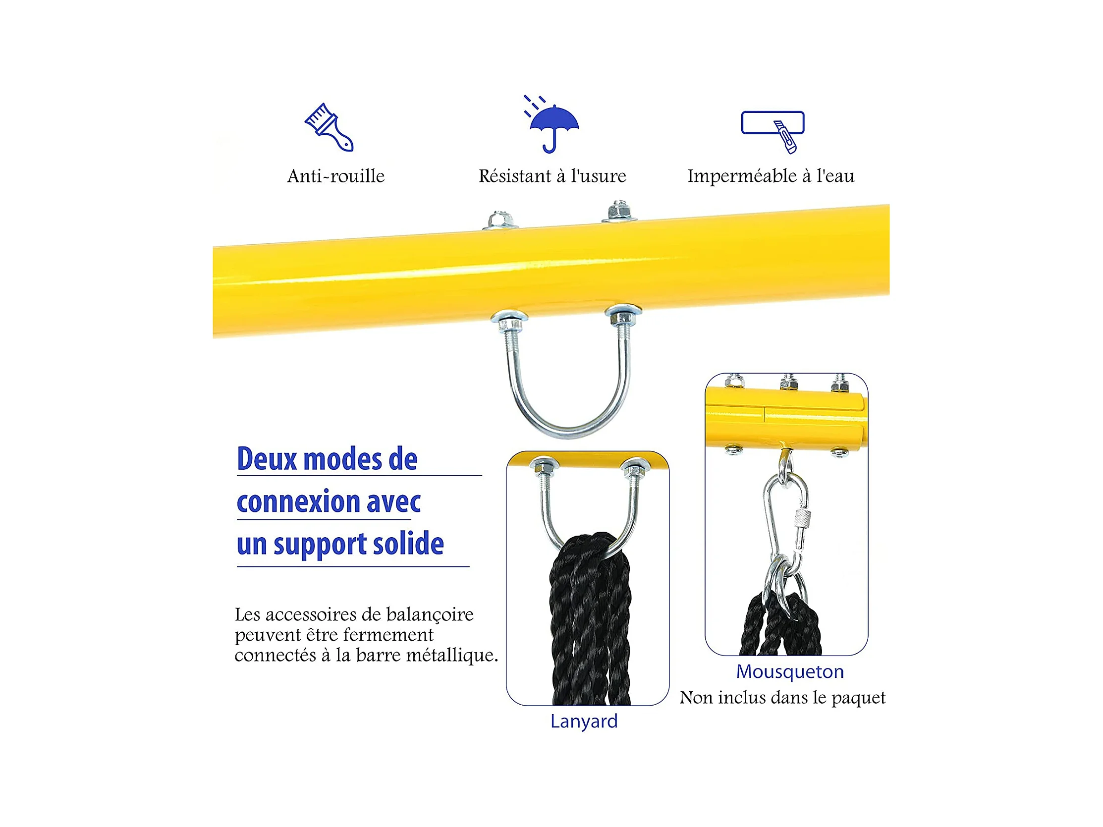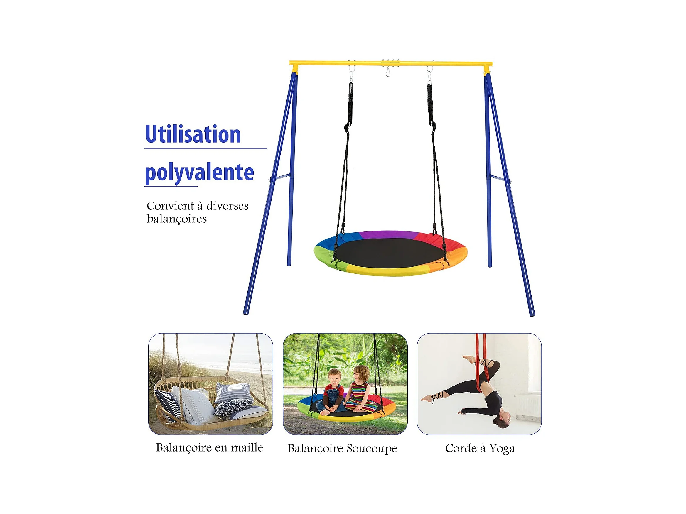 Ensemble de Balançoires Portique SucceBuy de Jardin Nacelle 102 cm Charge 199,6 kg, Support en Métal, Corde Réglable pour l'arrière-cour