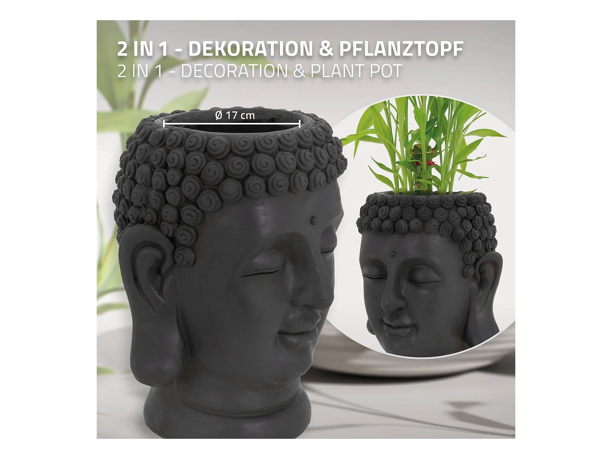 Pot de fleurs tête de Bouddha 23x23x44 cm case récipient pour fleurs anthracite