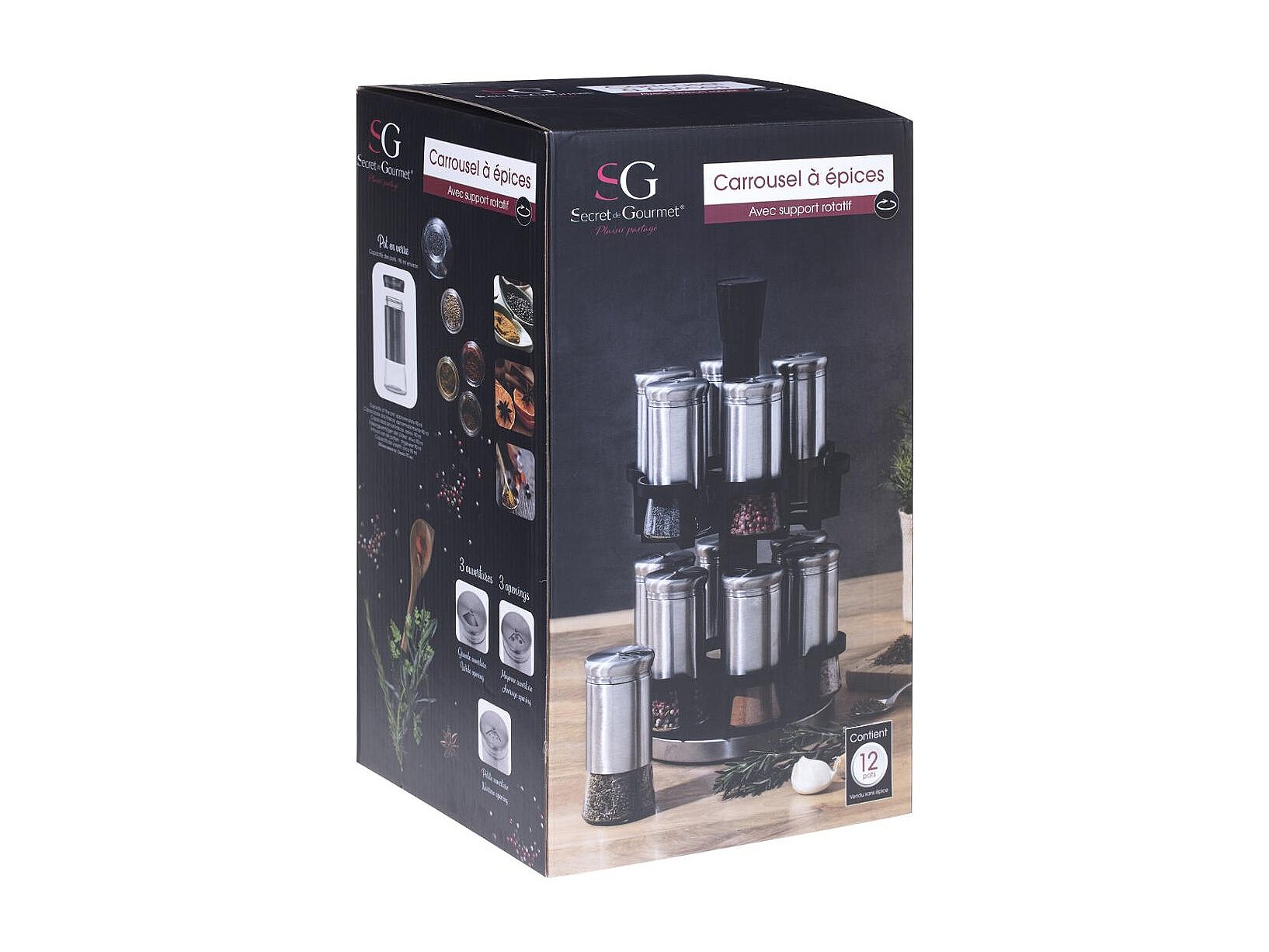 Présentoir à Épices Rotatif "12 Pièces" 33cm Argent
