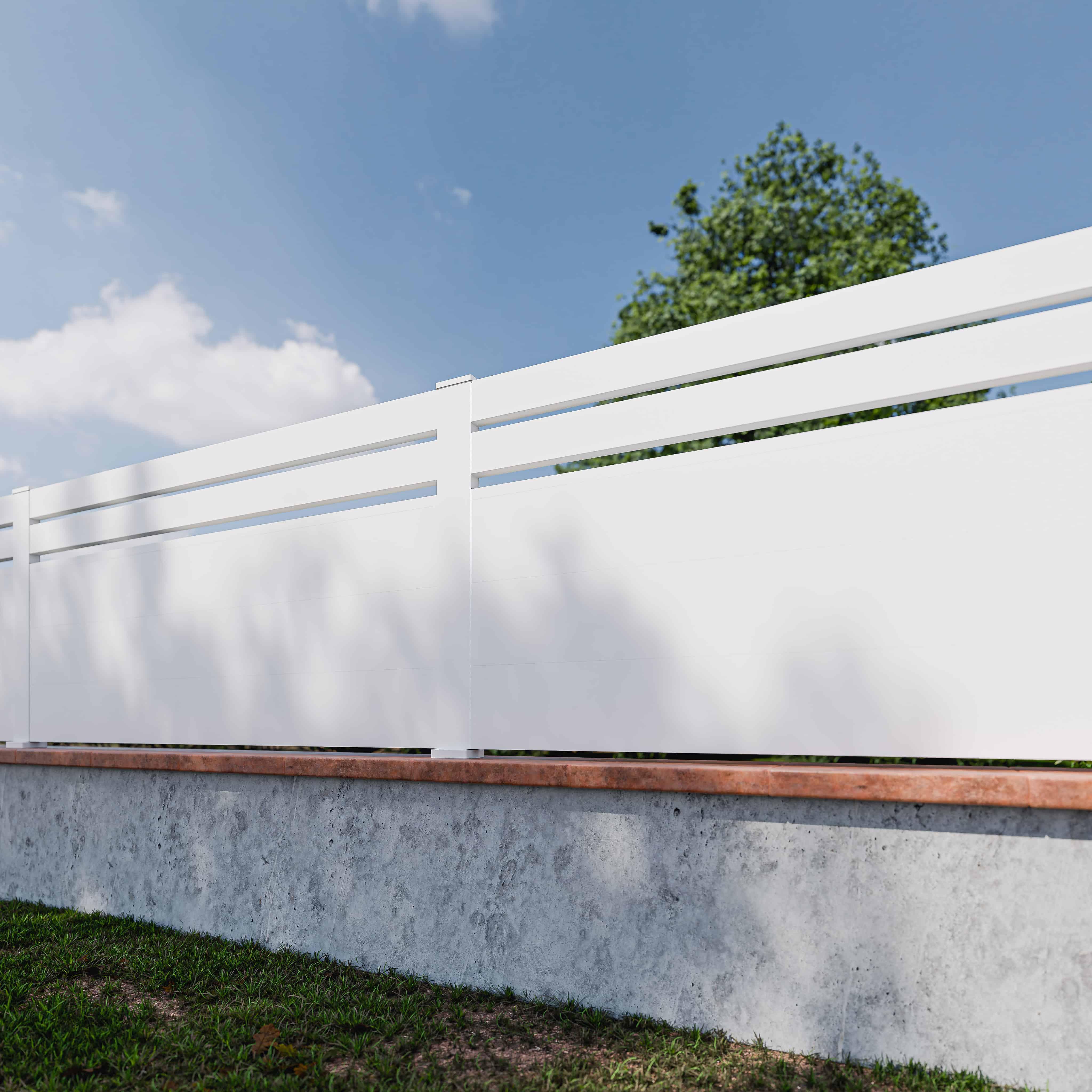 Kit Clôture SLIM PVC Blanc H. 90 cm x L. 11.10 m - 2 Lisses + 3 Soubassements