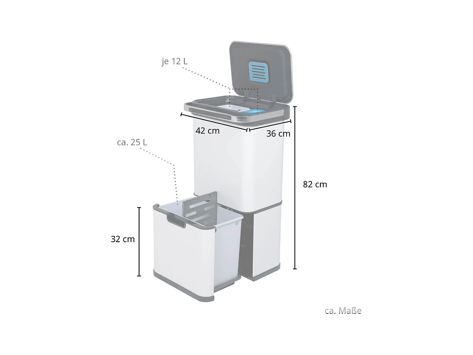 Poubelle à capteur 60L Fonction autonettoyante et filtre à charbon actif