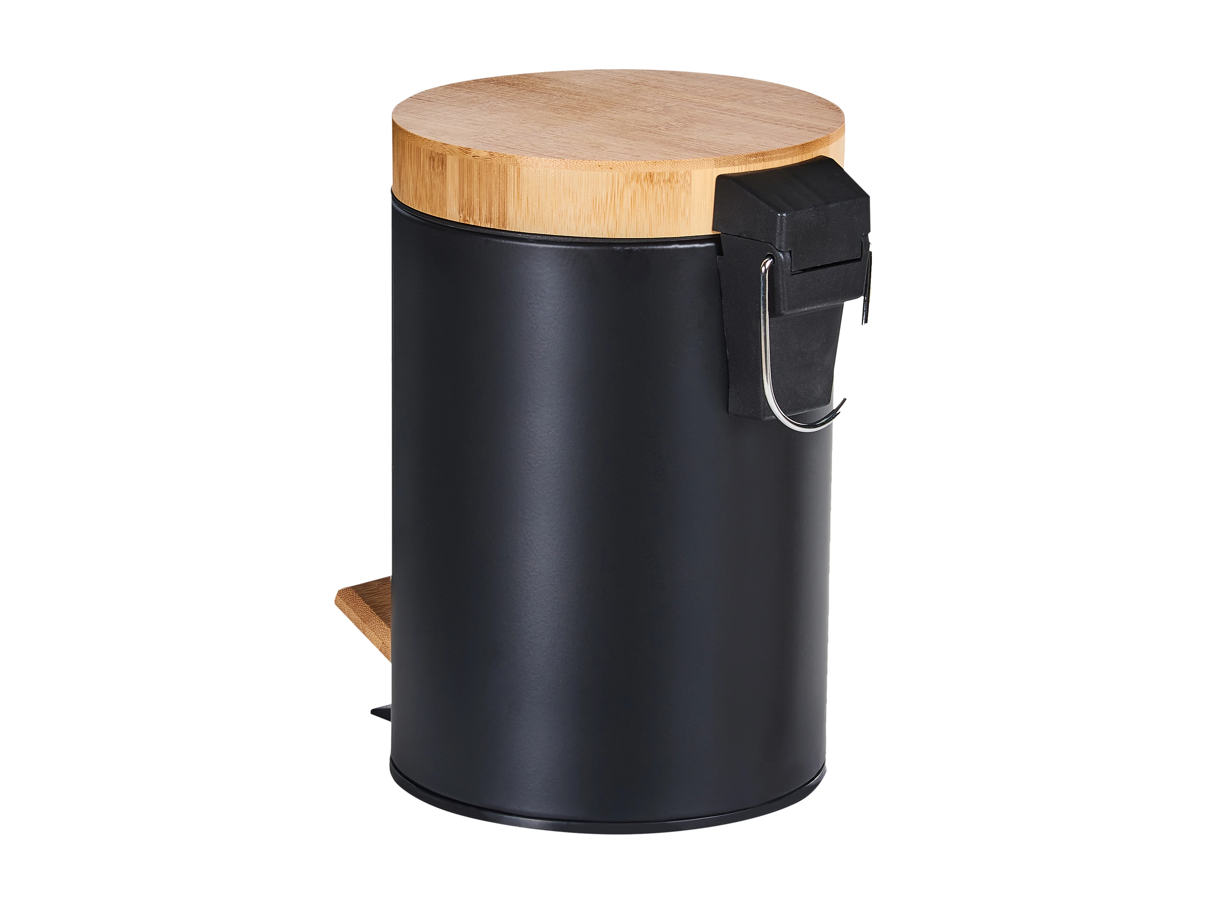 Poubelle à pédale 3L en Métal noir et Bambou
