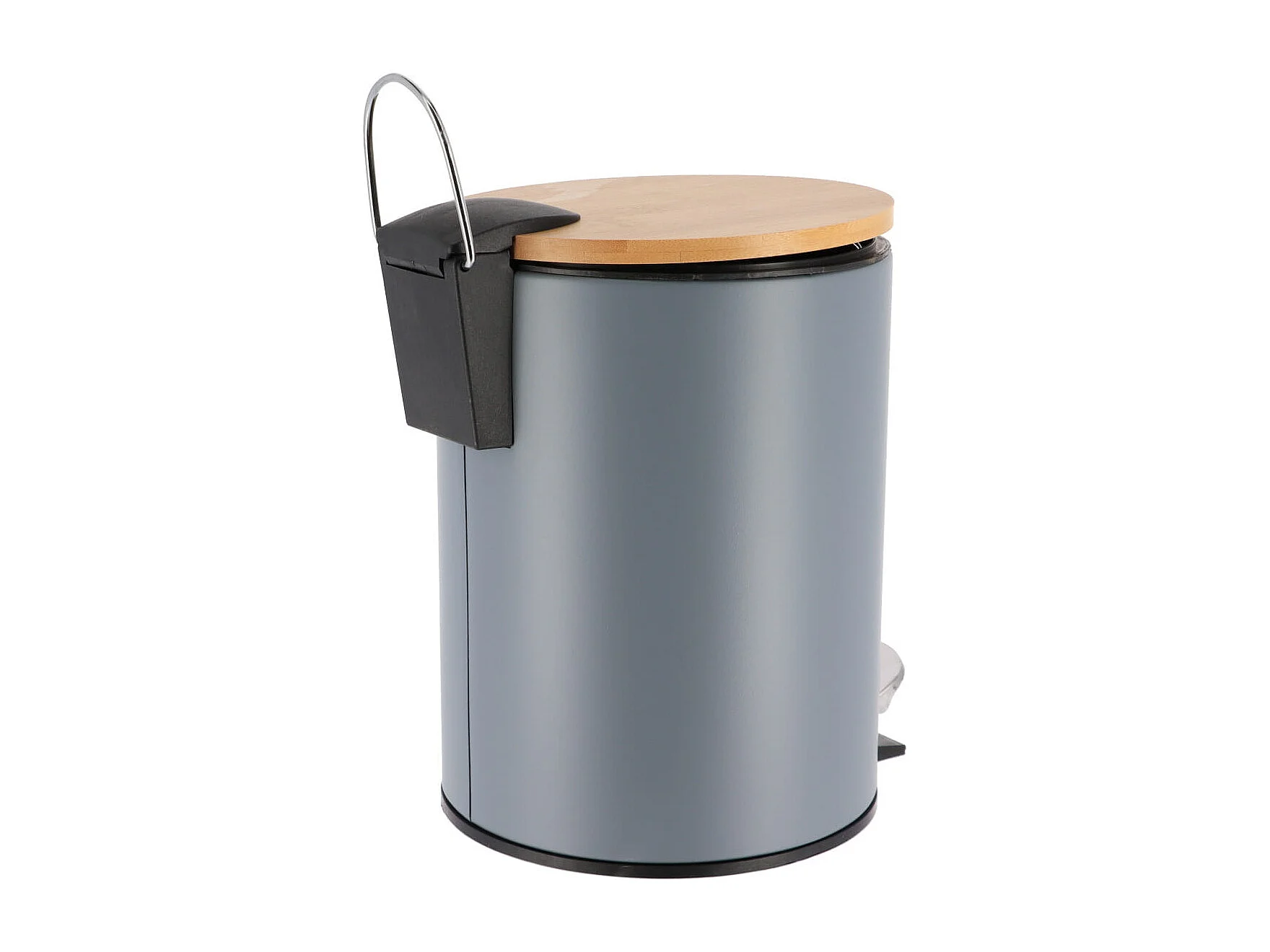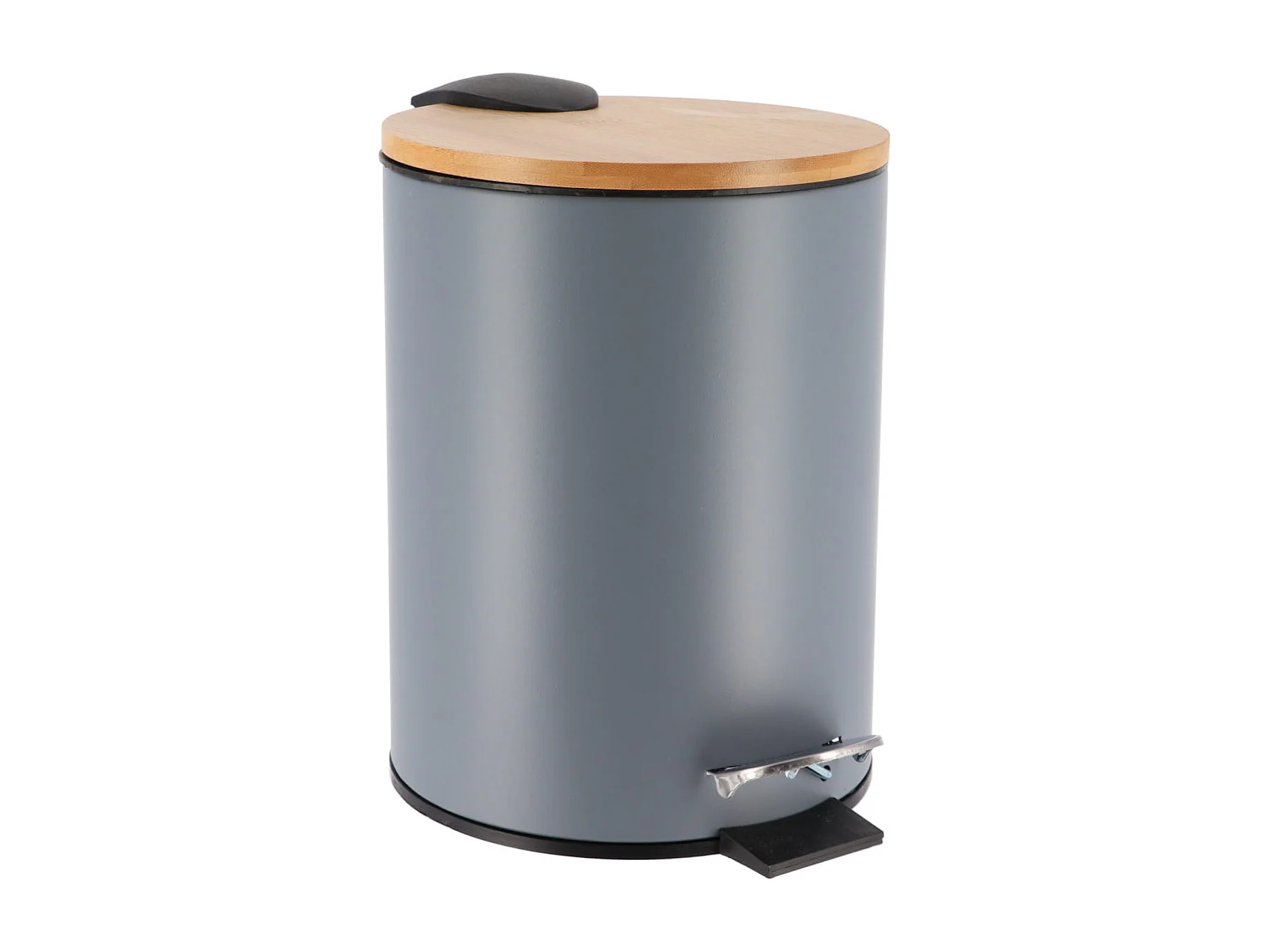 Poubelle à pédale 3L en métal Gris avec couvercle en Bambou