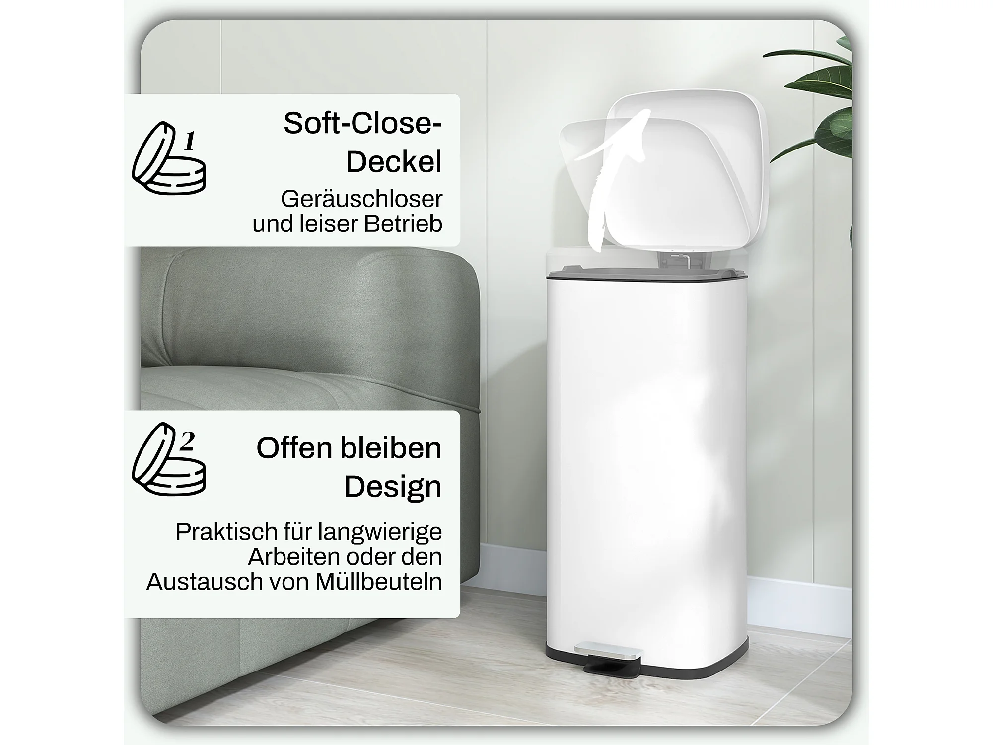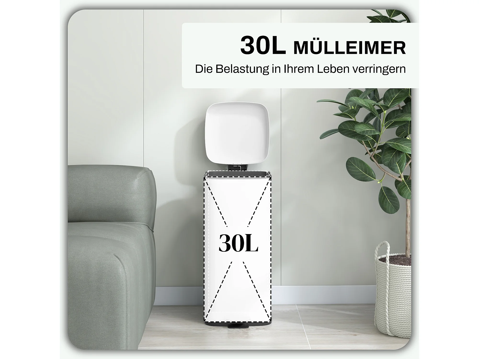 Poubelle à pédale, 30L, métal, avec couvercle et seau interne, noir (28x35x63.5 cm)