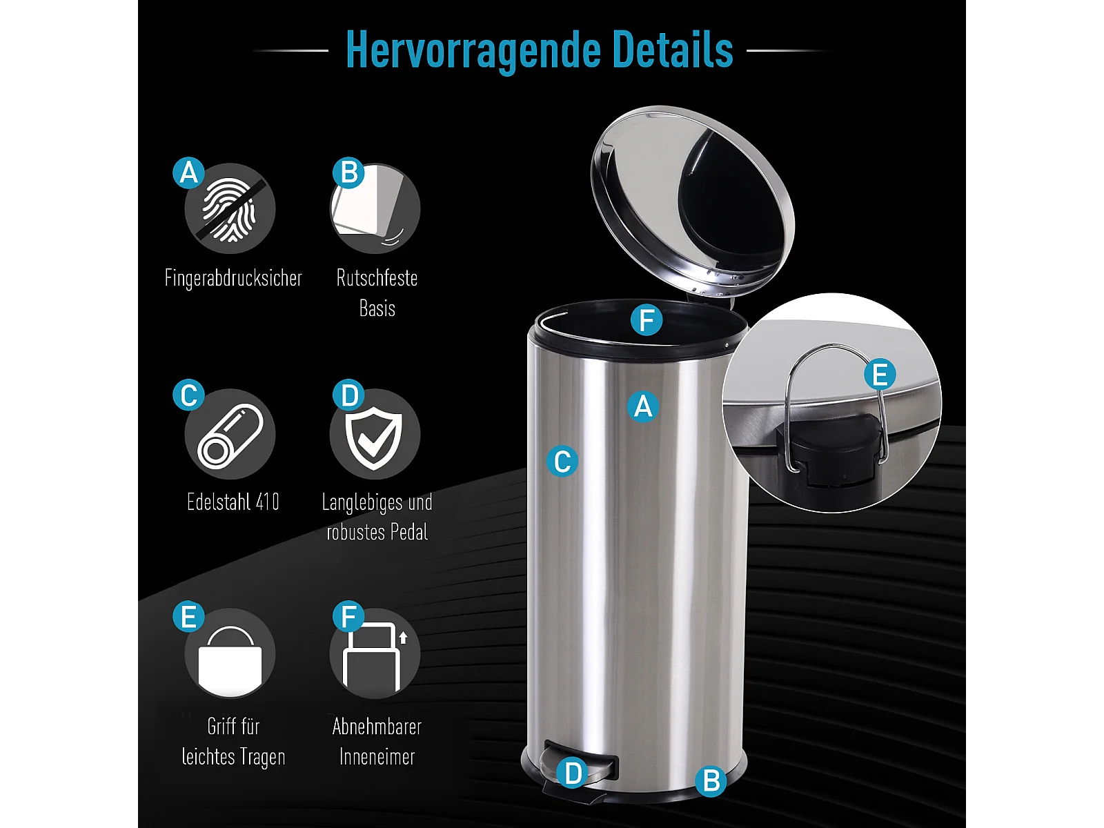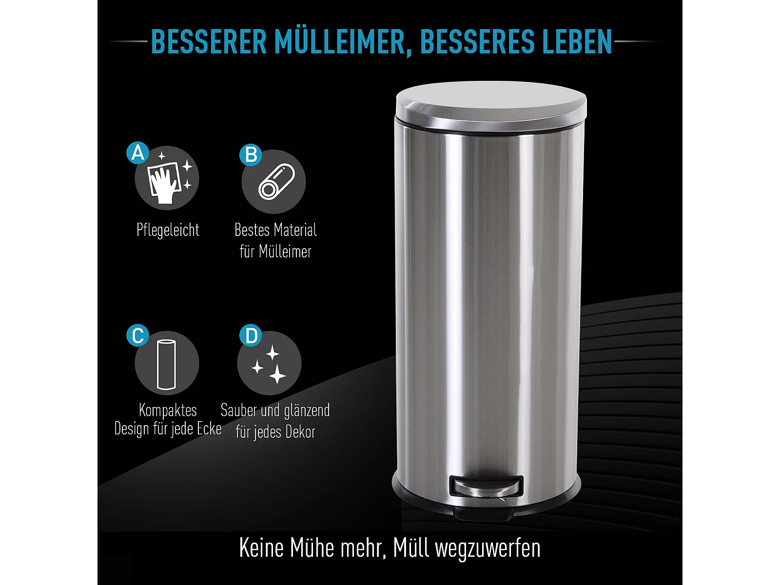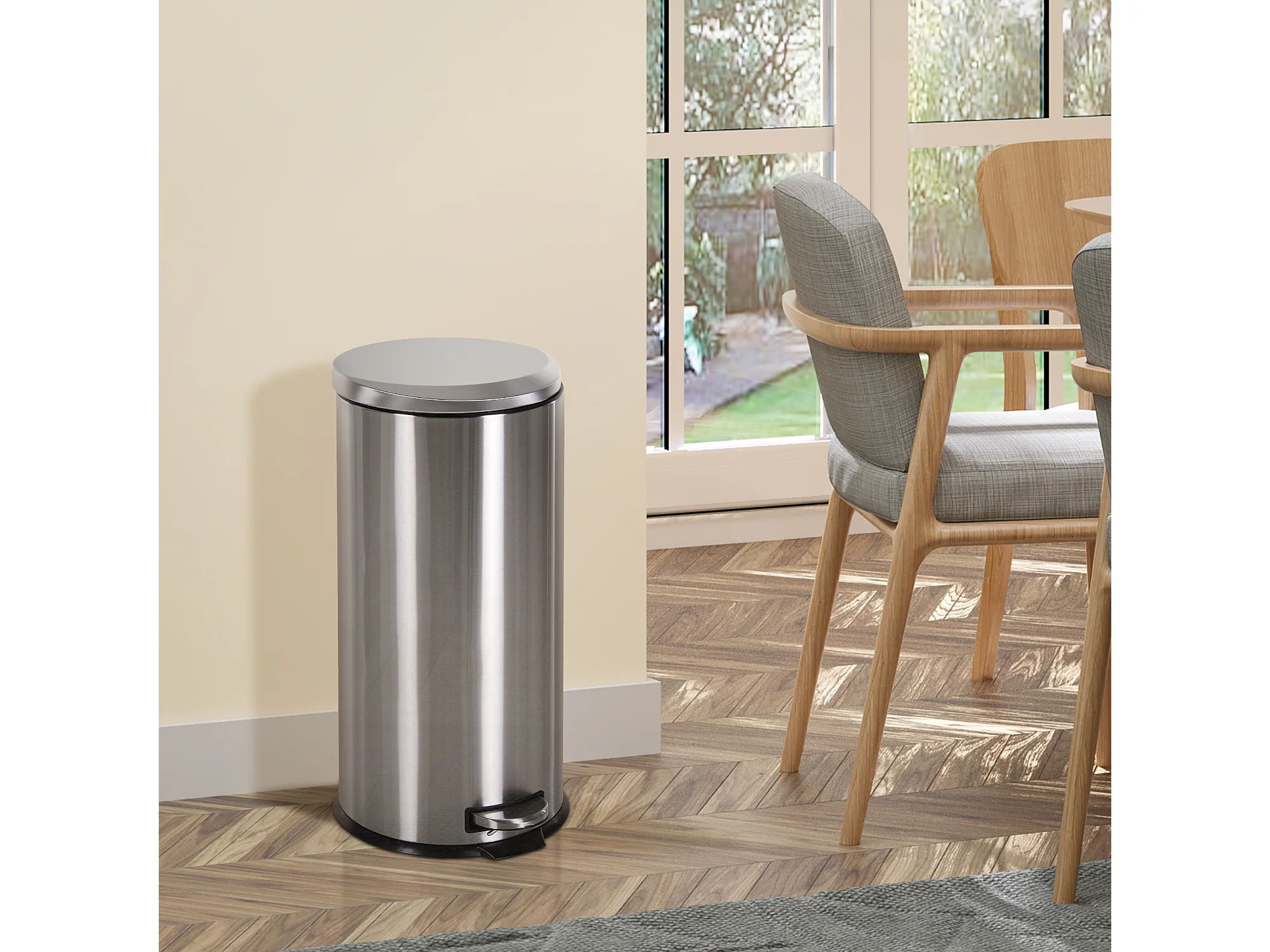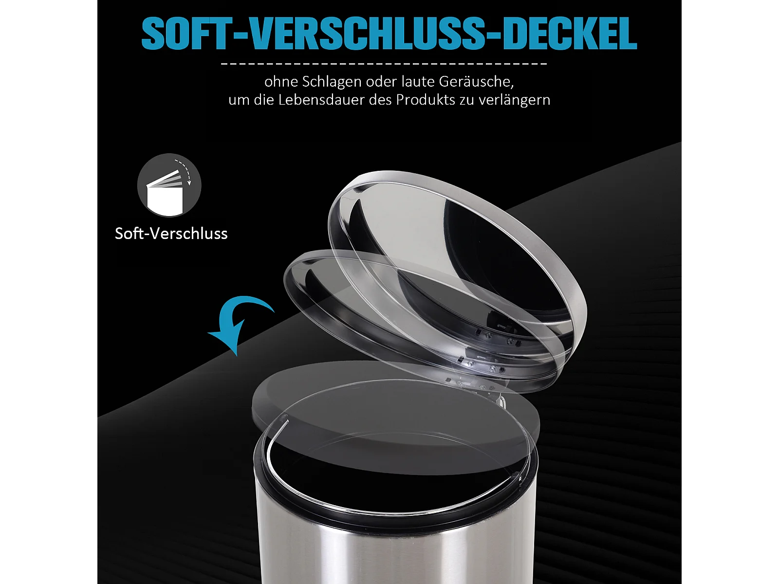 Poubelle à pédale avec seau intérieur, inox, fermeture douce, argent (29.2x29.2x62.5cm)