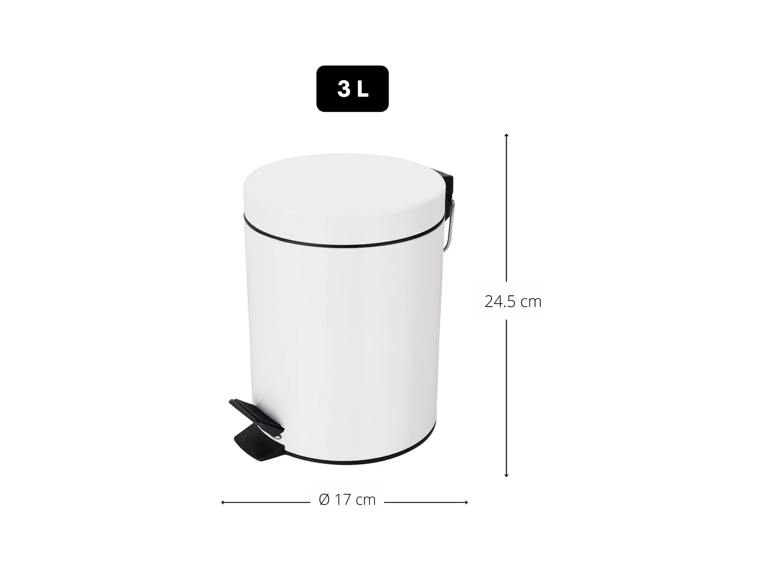 poubelle à pédale ø17 x 24,5 (3 litres), métal, blanc