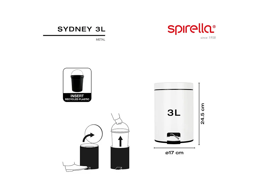 Poubelle 3 litres à pédale en acier msv 16,5 x 25 cm