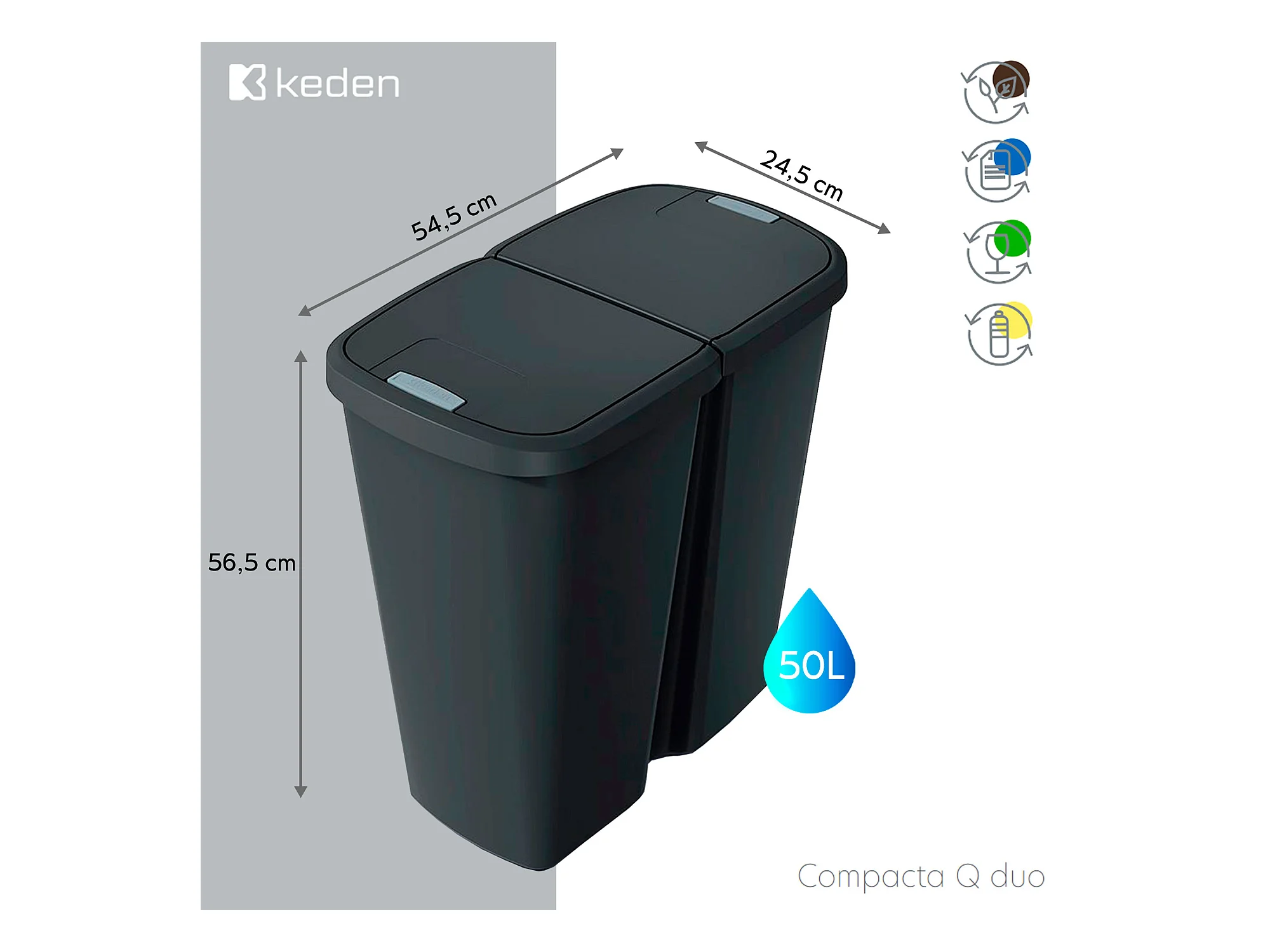 Système de recyclage blanc 2x23L Keden 56x39x41