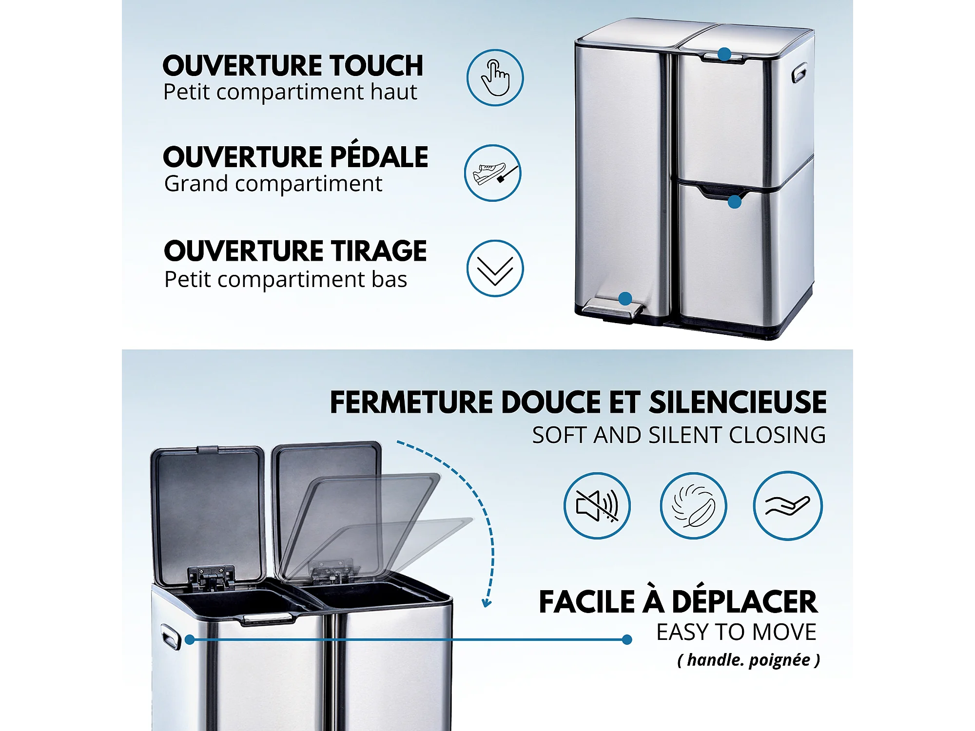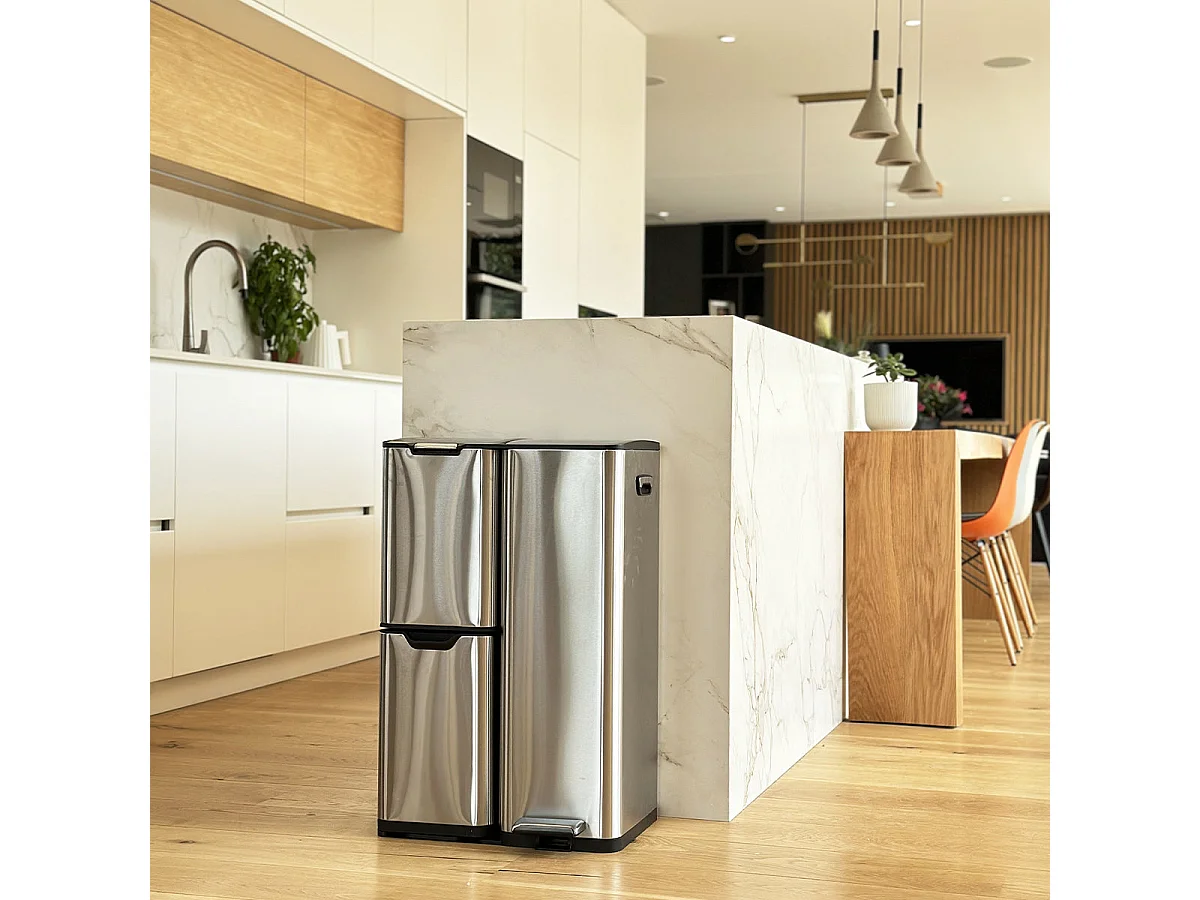 Poubelle de Tri 2 Bacs en Inox "Ariane" 30L Argent