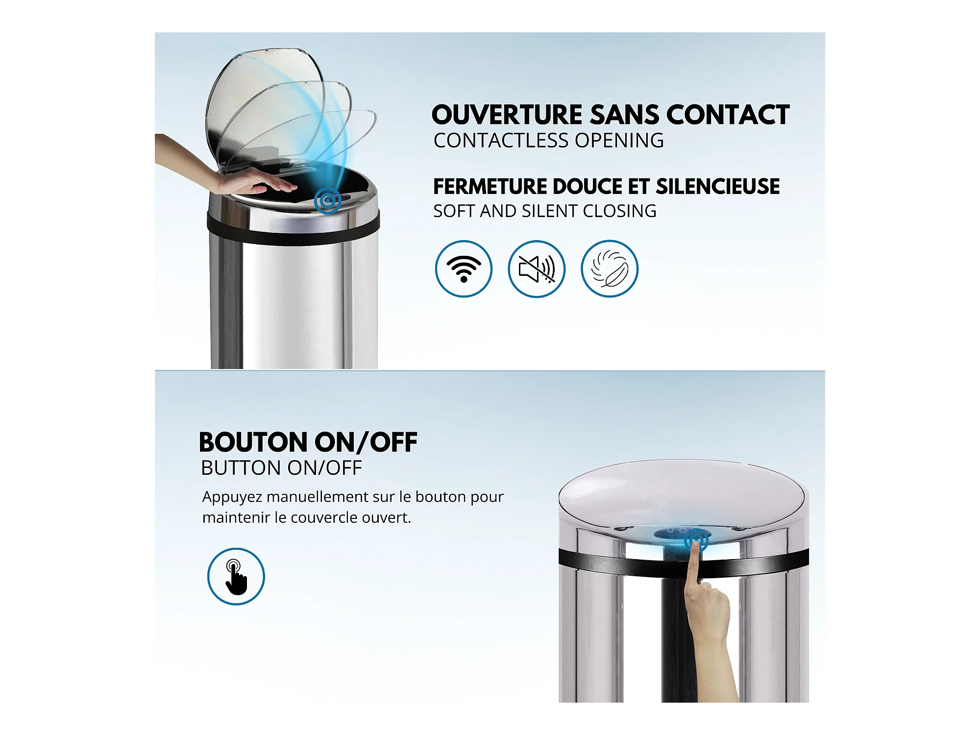 Poubelle automatique détecteur de mouvement poubelle tri selectif 2 bacs capacité totale 30L acier inox. brossé