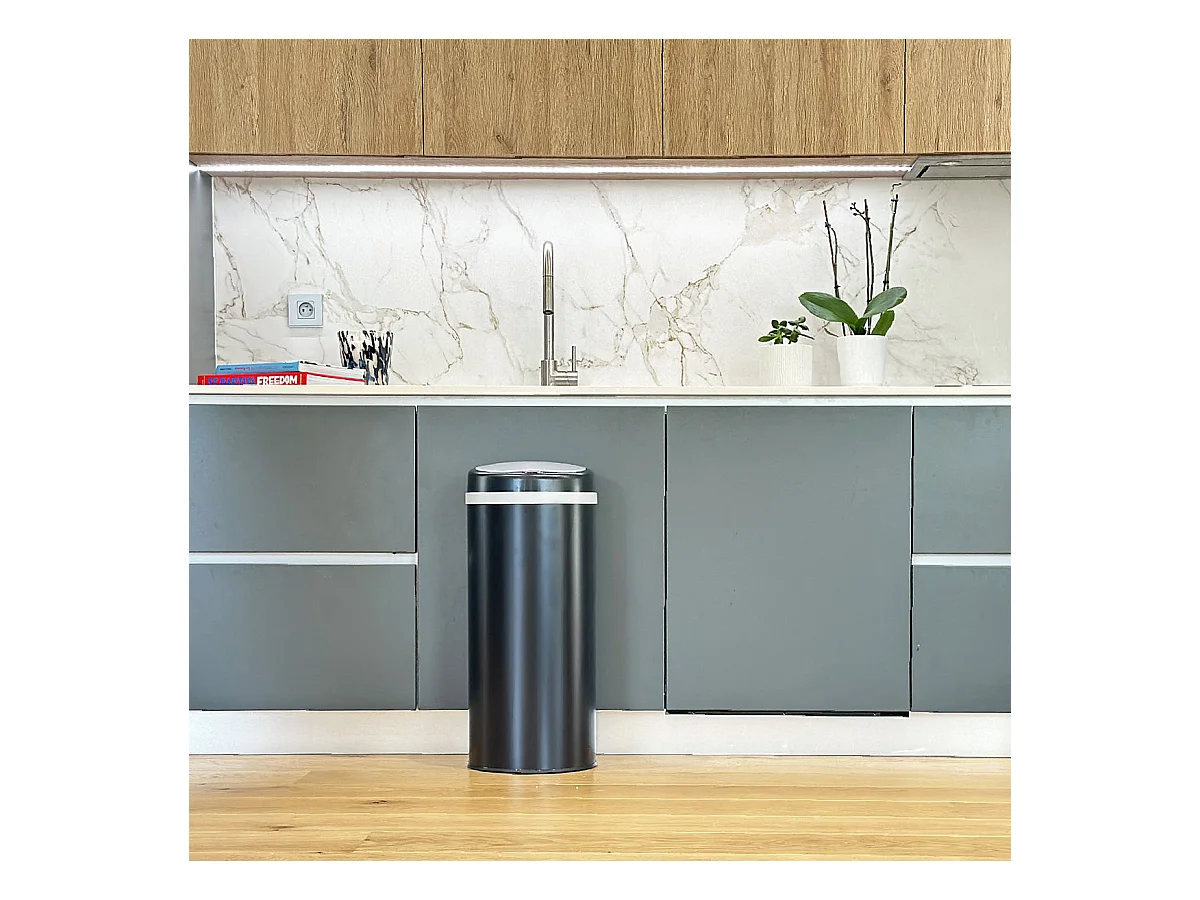 WELL HOME - Poubelle intelligente SANS pieds avec ouverture automatique et contact manuel 30L, 35,5x26x60cm, Noir