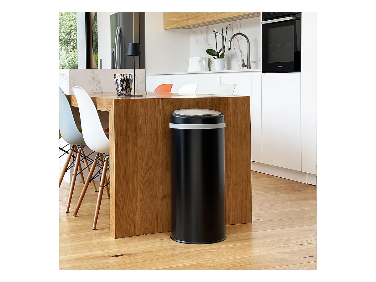 Poubelle automatique détecteur de mouvement 50L bac amovible acier inox. noir