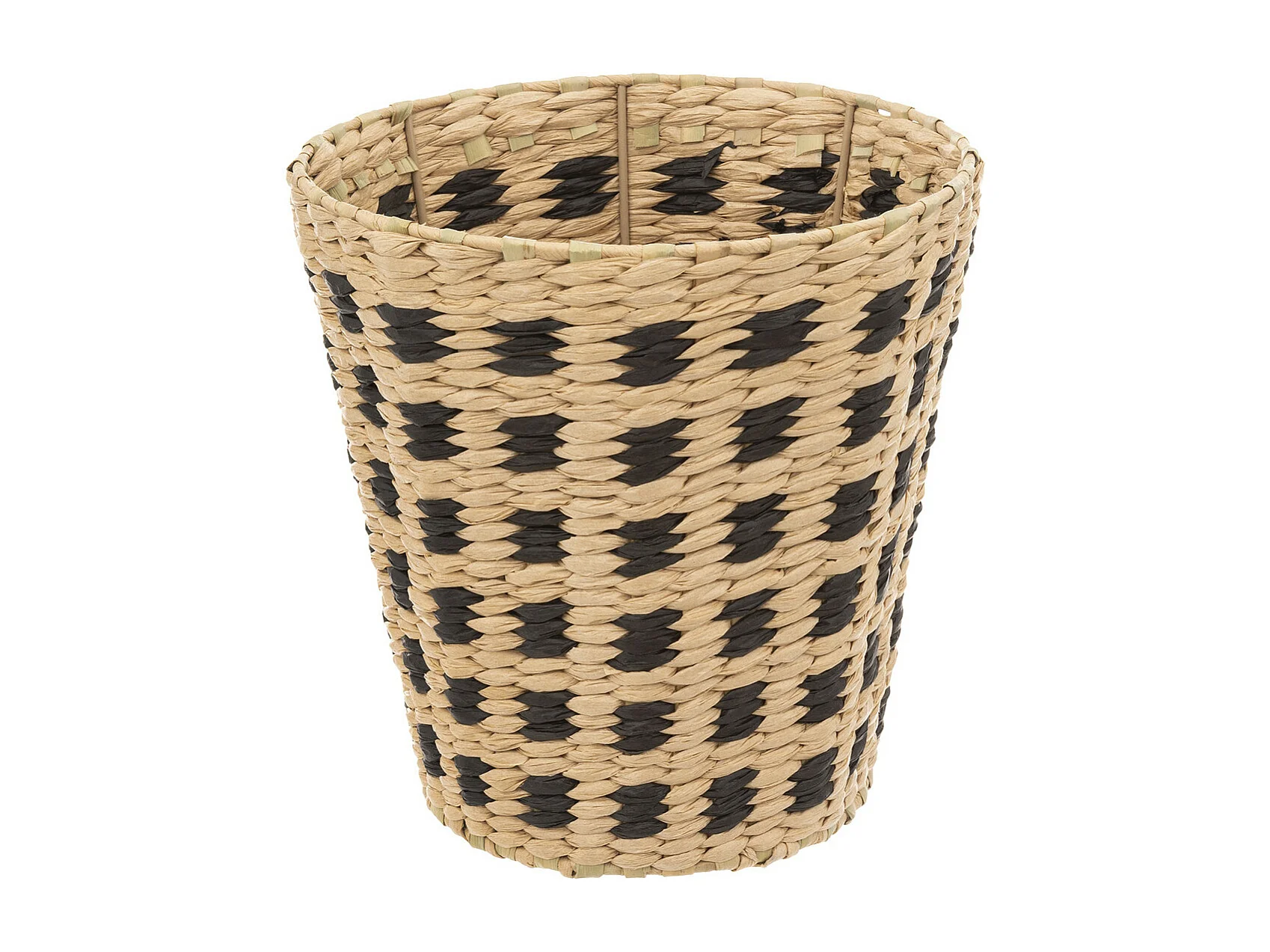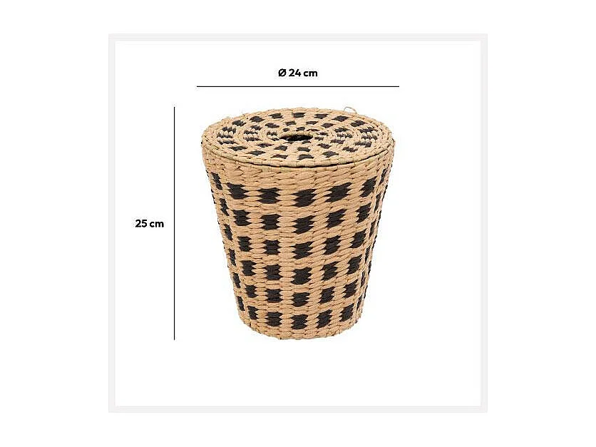 Poubelle de salle de bain avec couvercle tressé naturel et noir 7 L