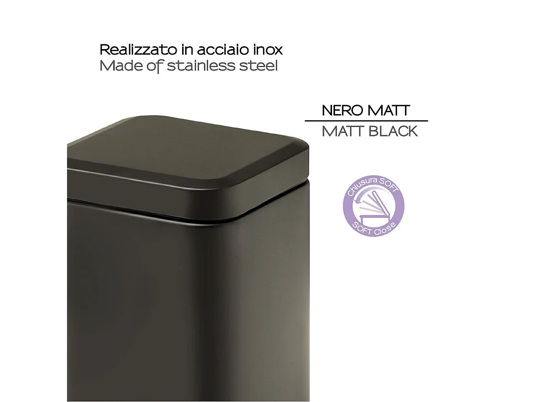 Poubelle De Salle De Bain Rectangulaire En Acier Noir 3L | Artemisia