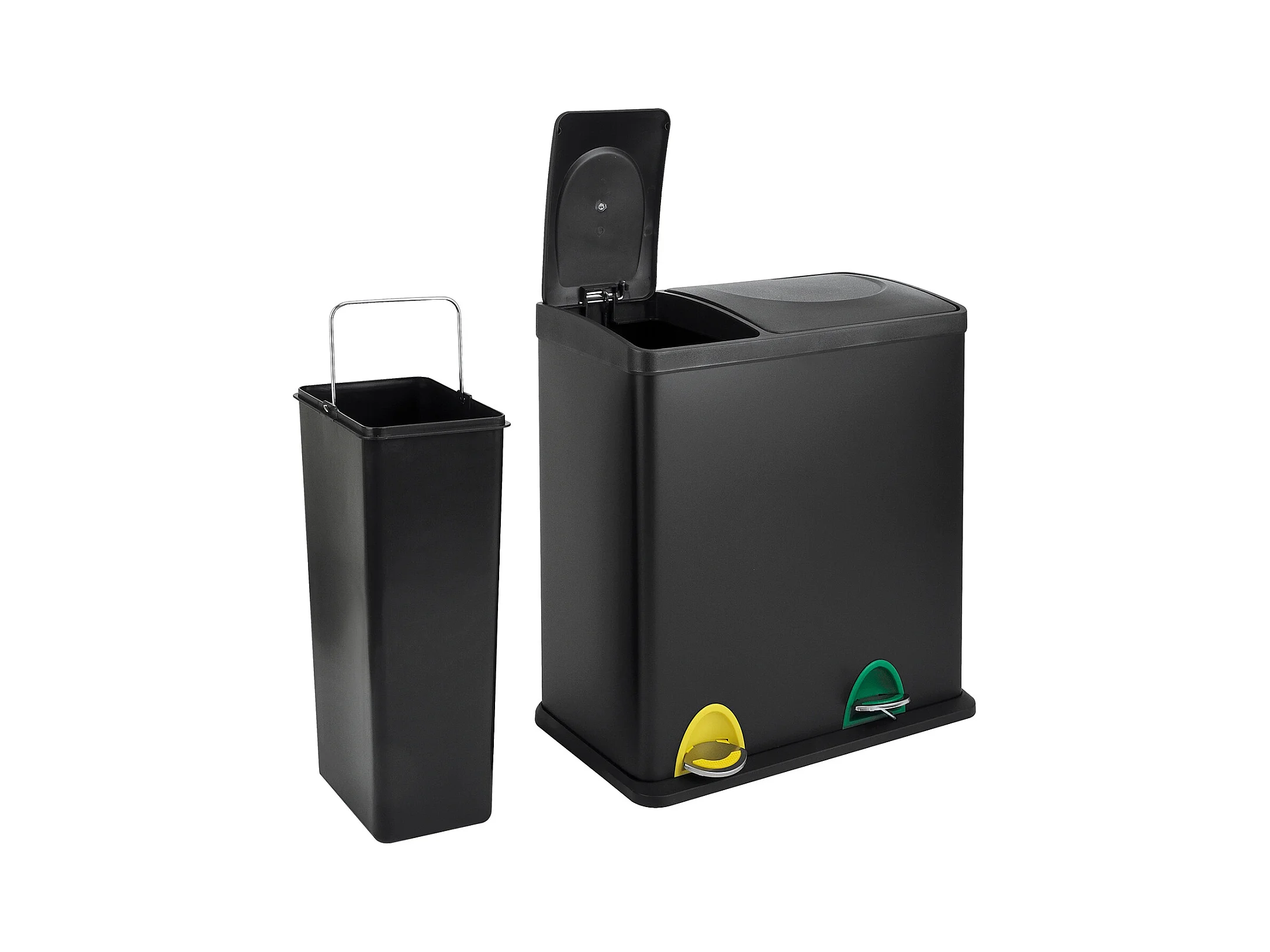 Poubelle à double pédale 60 L ECOSORT Métal Noir