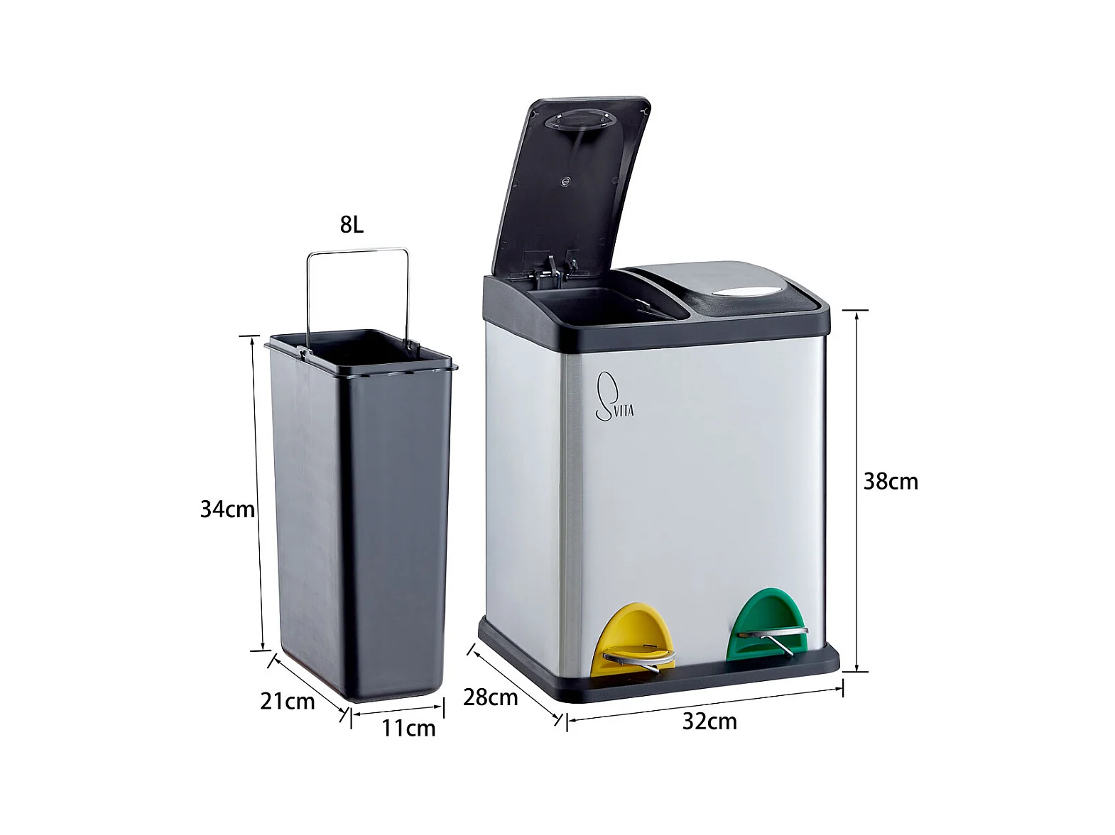 SVITA TM3X18 Poubelle corbeille à papier 54L poubelle tri sélectif argent