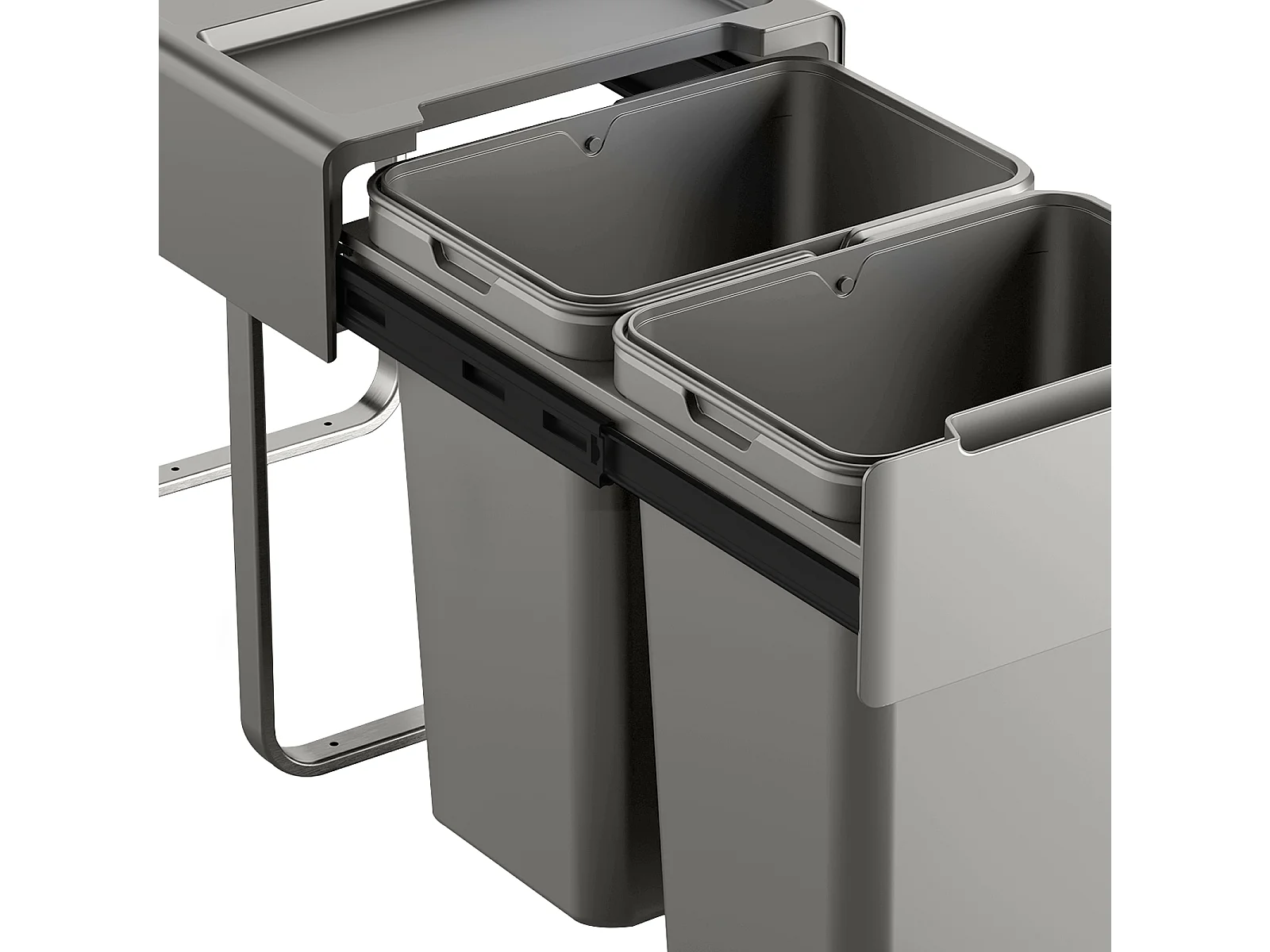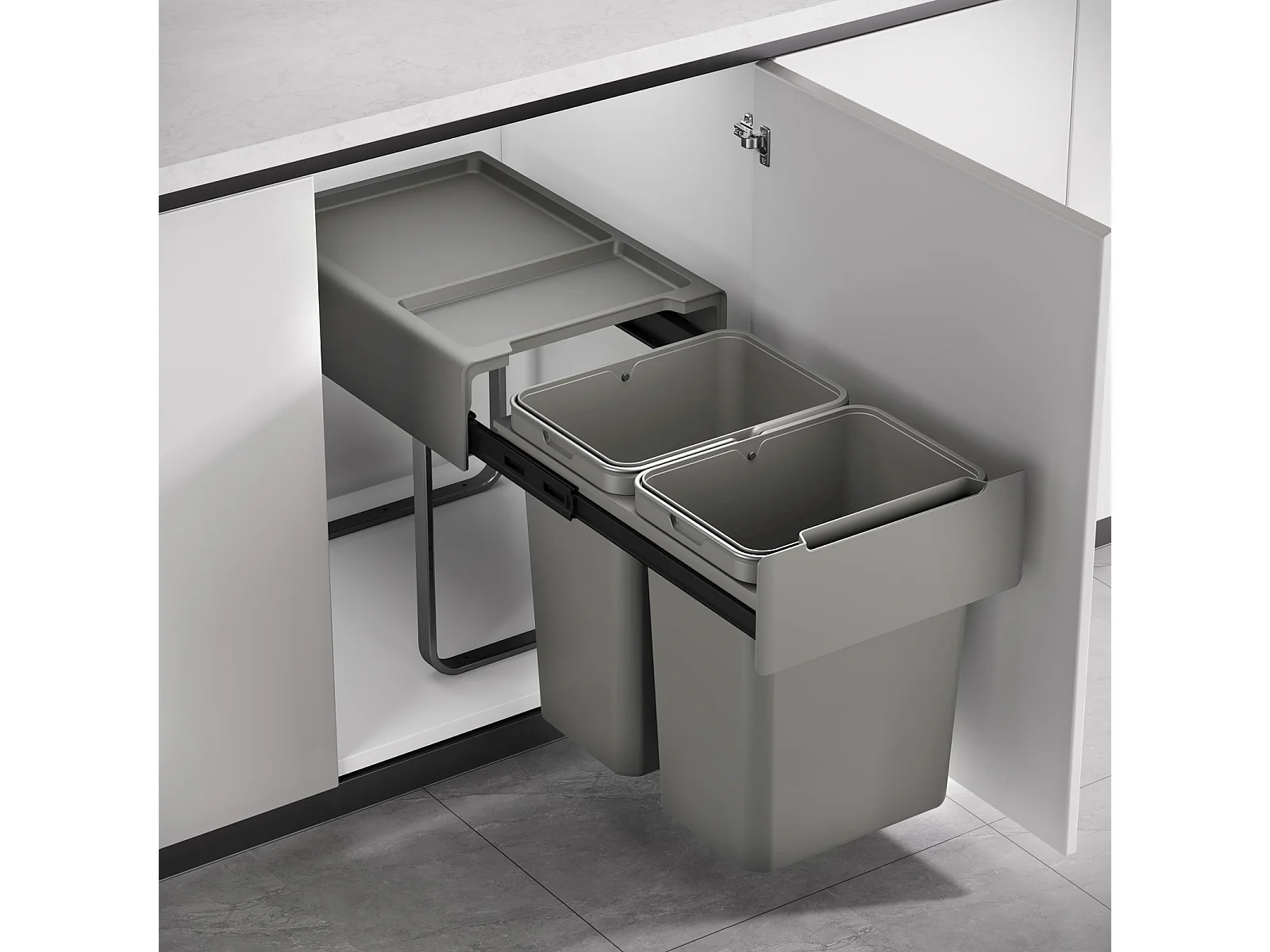 Poubelle de tri coulissante - 3 bacs amovibles avec poignée - 2 x 10L et 1 x 20L - métal PP gris